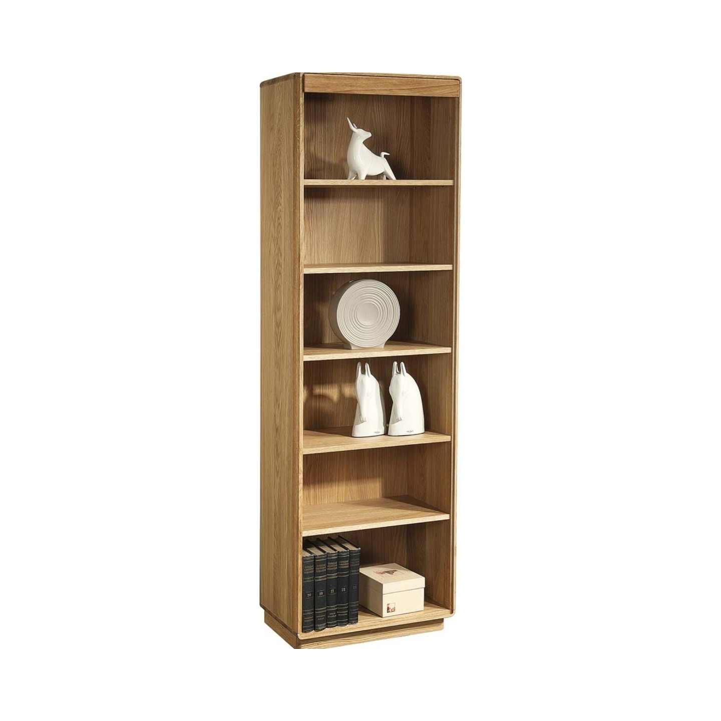 Prezentujemy elegancki i funkcjonalny regał I Atlanta, wykonany z wysokiej jakości drewna dębowego w wybarwieniu dąb olej natura. Ten nowoczesny regał, doskonale widoczny na załączonym zdjęciu, jest idealnym rozwiązaniem do każdego salonu, jadalni, gabinetu czy sypialni, oferując przestronne miejsce do przechowywania i ekspozycji. Jego smukła, pionowa forma z sześcioma otwartymi półkami pozwala na łatwe zagospodarowanie przestrzeni, a także na wyeksponowanie ulubionych książek, dekoracji czy pamiątek. Fronty z litego, sękatego dębu oraz korpus z fornirowanej płyty wiórowej gwarantują trwałość i solidność na lata, a naturalne sęki w drewnie podkreślają jego autentyczność i unikalny charakter.