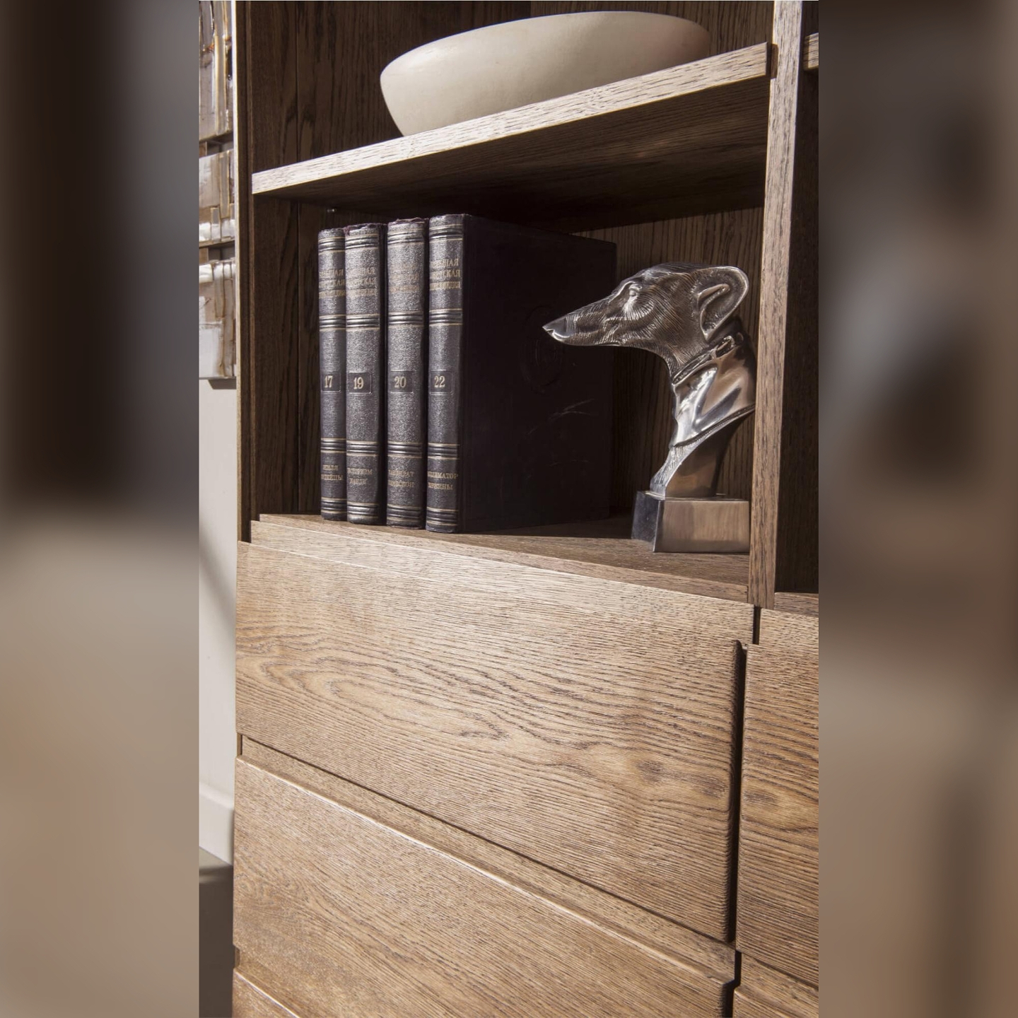 Prezentujemy elegancki i funkcjonalny Regał II dąb palony Atlanta – doskonałe rozwiązanie do przechowywania i ekspozycji, które wzbogaci każde wnętrze. Wykonany z dbałością o detale, łączy w sobie solidność konstrukcji z pięknem naturalnego drewna. Korpus z płyty wiórowej fornirowanej dębem oraz fronty z masywu dębu gwarantują trwałość i estetykę na lata. Wykończenie olejem palonym nadaje meblowi głęboki, szlachetny odcień, a szczotkowany front podkreśla unikalną strukturę drewna, co sprawia, że regał staje się wyrazistym elementem dekoracyjnym w salonie, jadalni czy gabinecie.