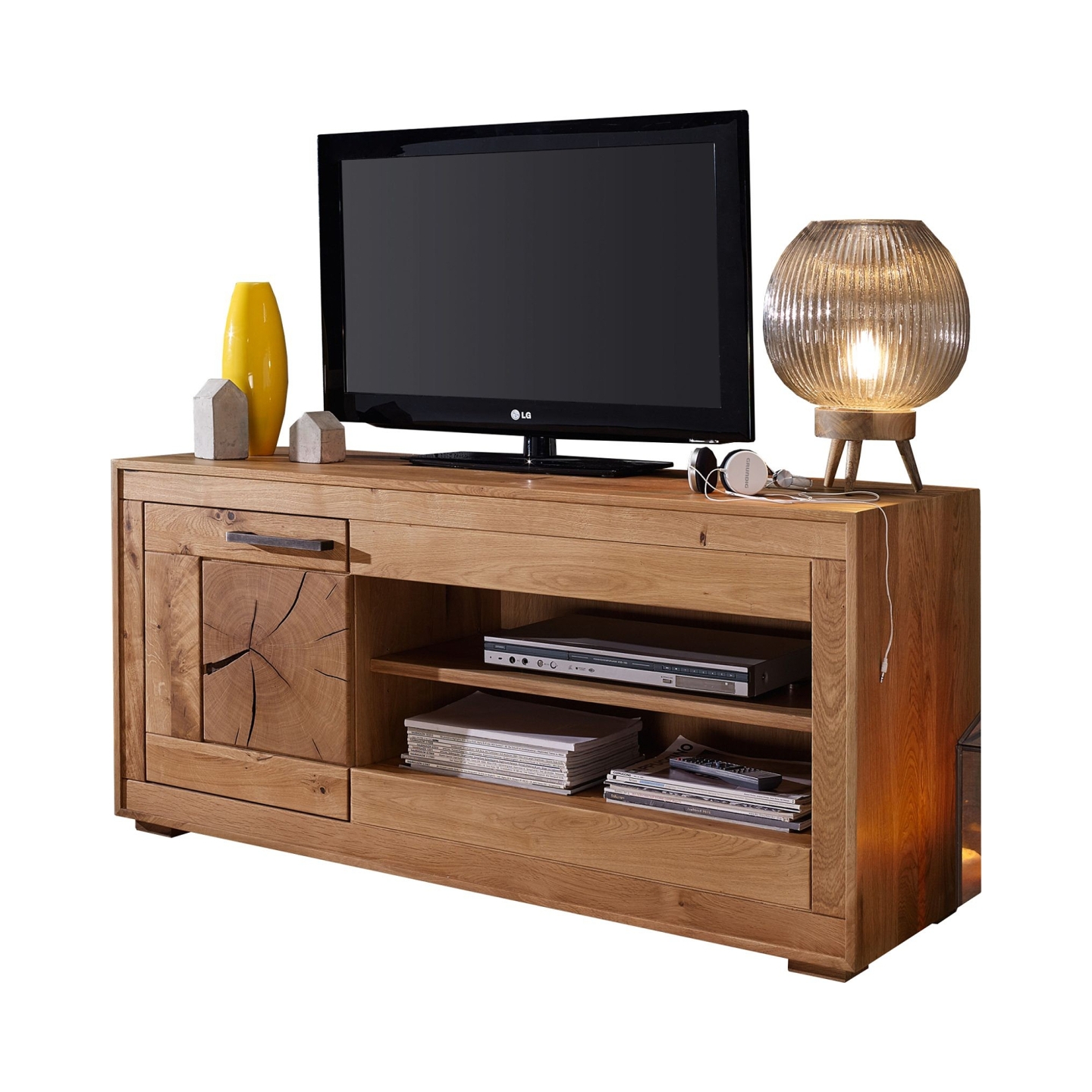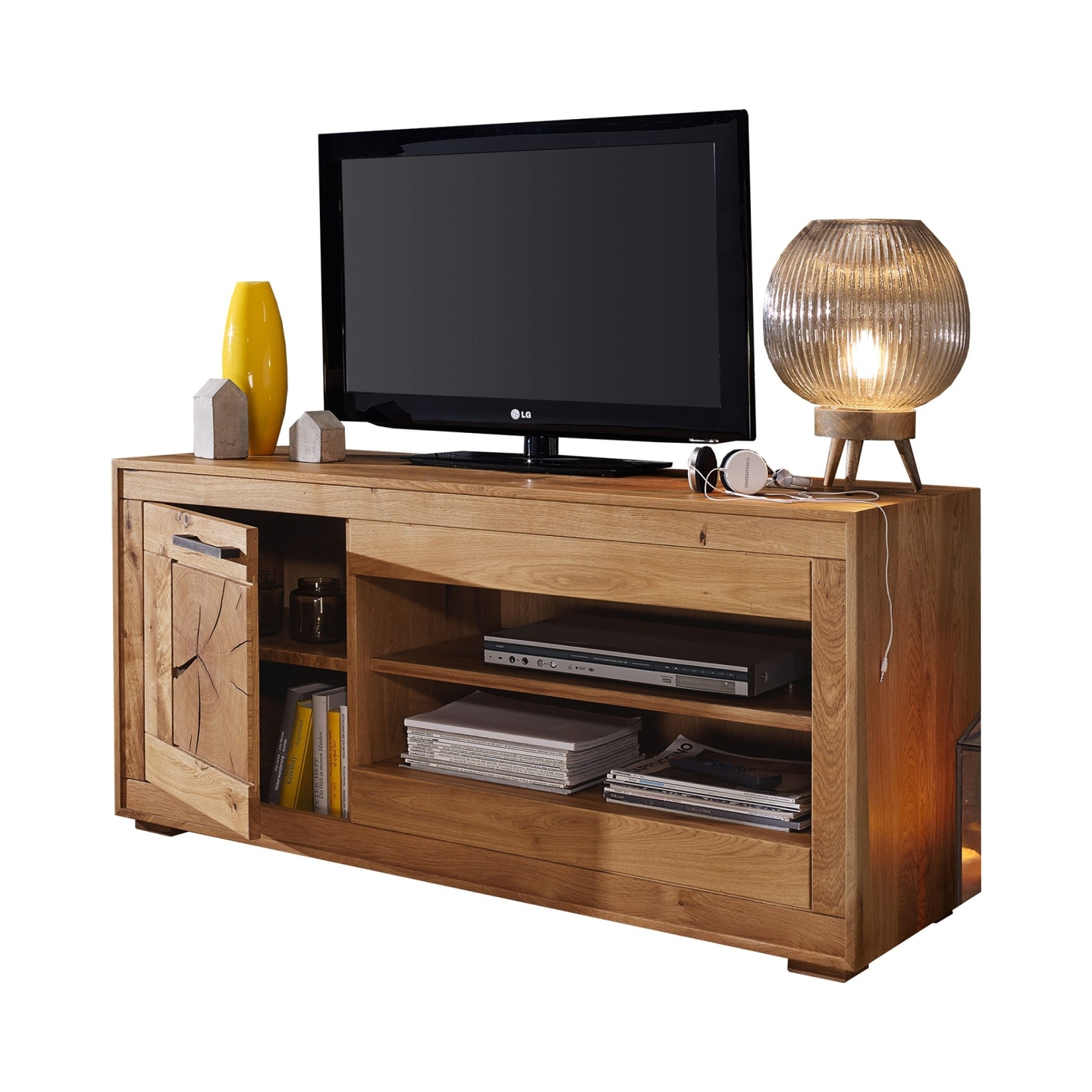Otwarta półka pomieści konsolę lub dekoder, a boczne szafki ułatwiają uporządkowanie kabli i akcesoriów. Szafka dostarczana jest w całości zmontowana – gotowa do ustawienia i użytkowania od razu po dostawie. Powierzchnia zabezpieczona naturalnym olejem matowym podkreśla rysunek słojów i chroni drewno przed codziennym użytkowaniem.