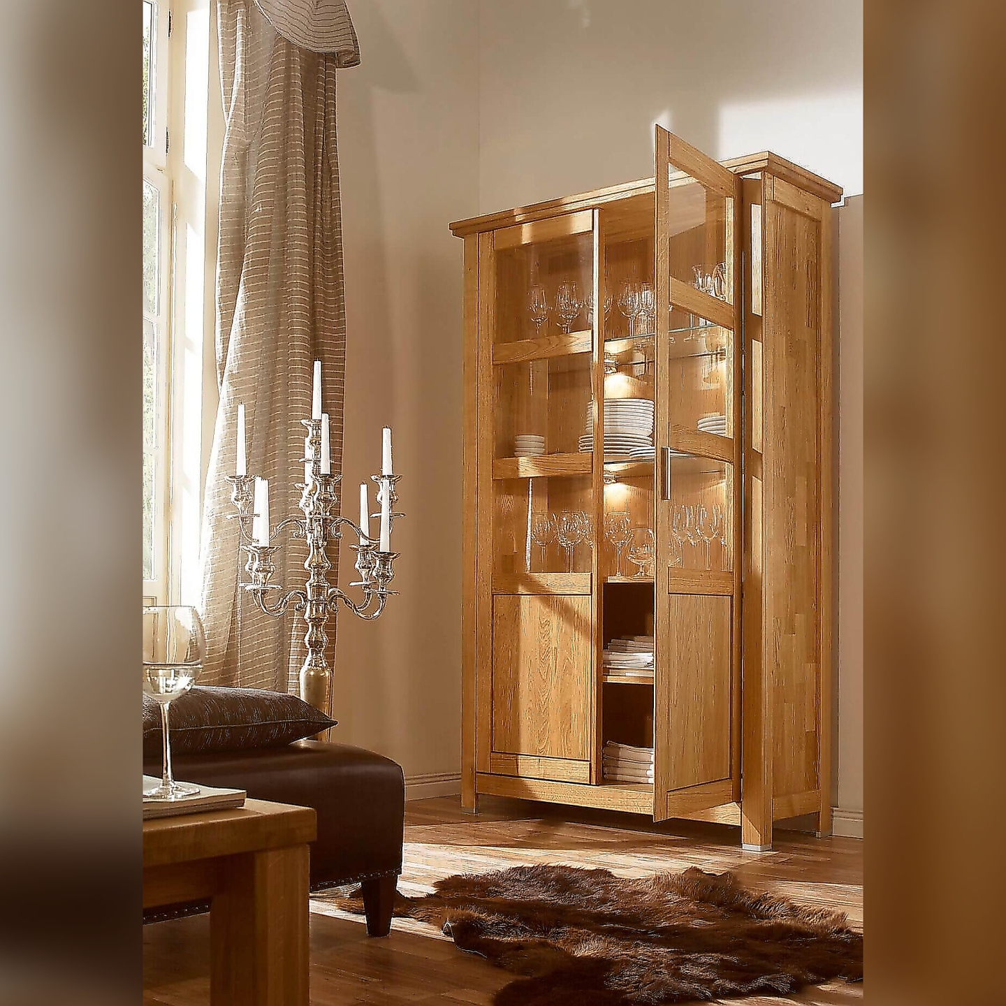Witryna 2-drzwiowa olej natura Porto to doskonałe połączenie elegancji i funkcjonalności. Jej praktyczna bryła umożliwia zarówno przechowywanie, jak i eksponowanie rzeczy. Opcjonalne oświetlenie wnętrza z przeszkleniami (brak w zestawie) sprawi, że witryna będzie sprawiała wrażenie lżejszej i dodatkowo podkreśli eksponowane przedmioty, a także nada ciepły klimat wnętrzu. To idealny wybór dla tych, którzy poszukują mebla trwałego, estetycznego i dopasowanego do różnorodnych stylów wnętrzarskich.