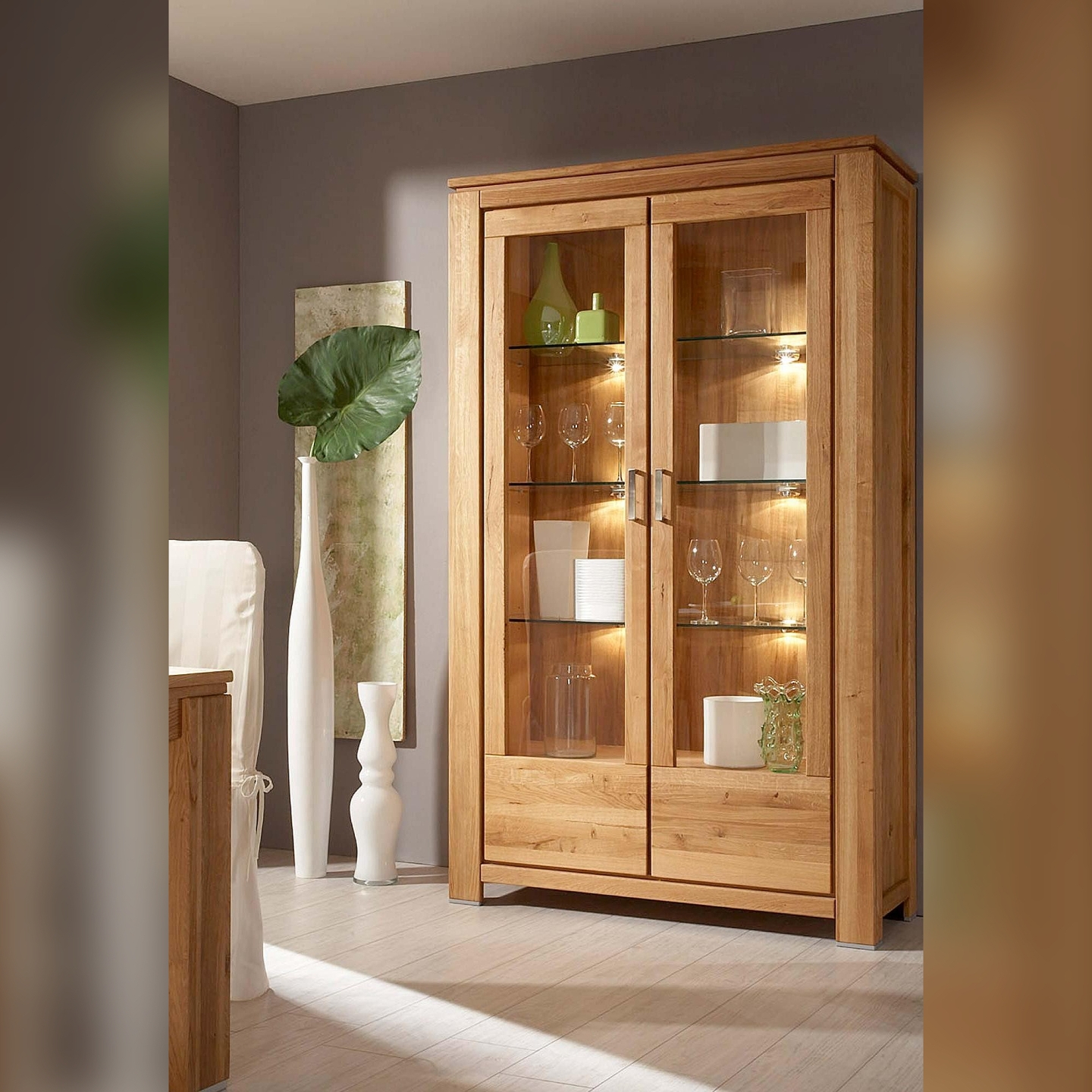Witryna 2-drzwiowa dąb sęczny Faro to doskonały wybór dla tych, którzy cenią sobie elegancję, funkcjonalność i naturalne piękno drewna. Jej solidna konstrukcja i przemyślany design sprawiają, że będzie służyć przez długie lata, stanowiąc zarówno praktyczny element wyposażenia, jak i stylową ozdobę pomieszczenia. Widoczna na zdjęciu witryna doskonale wpisuje się w aranżacje, które stawiają na naturalne materiały i ciepłą atmosferę. Połączenie otwartych i zamkniętych przestrzeni pozwala na elastyczne zarządzanie ekspozycją i przechowywaniem.