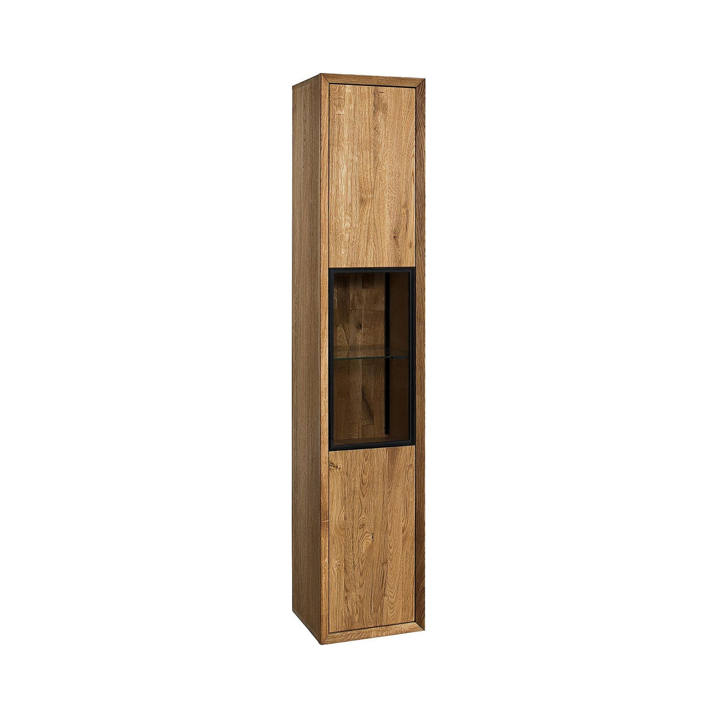 Odkryj wyjątkową witrynę Vigo II, idealną do salonu, jadalni czy gabinetu, która wprowadzi do Twojego wnętrza naturalne piękno i nowoczesny design. Ta elegancka witryna, wykonana z wysokiej jakości drewna dębowego, to doskonały wybór dla osób ceniących sobie trwałość, estetykę i funkcjonalność. Dzięki naturalnemu wybarwieniu dąb natura i szczotkowanej powierzchni wykończonej woskiem lub olejem, witryna Vigo II podkreśla autentyczność drewna, uwzględniając jego naturalne sęki jako element dekoracyjny. Prezentowana na zdjęciu witryna wyróżnia się minimalistycznym, pionowym kształtem i przeszkloną wnęką, która pozwala wyeksponować ulubione przedmioty.