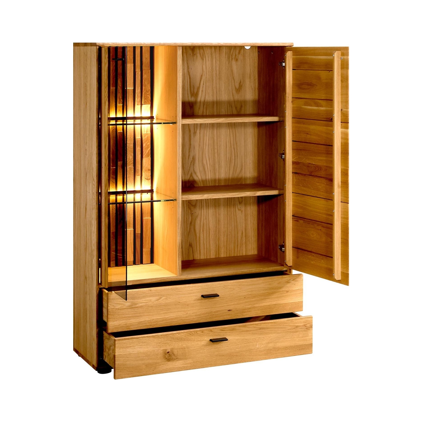 Prezentujemy Witrynę IV Tramonto dębową, która zachwyca swoją estetyką, funkcjonalnością oraz solidnością wykonania. Ta elegancka witryna, widoczna na załączonym zdjęciu, to idealne rozwiązanie do salonu, jadalni czy gabinetu, gdzie pozwoli na wyeksponowanie ulubionych przedmiotów, jednocześnie oferując praktyczne miejsce do przechowywania. Wykonana z litego dębu sęcznego oraz płyty fornirowanej, z wykończeniem olej natura i szczotkowaniem, wniesie do każdego wnętrza ciepło i niepowtarzalny styl. Co więcej, witryna jest dostarczana w pełni zmontowana i zawiera wbudowane oświetlenie, co znacznie ułatwia jej integrację z aranżacją pomieszczenia.