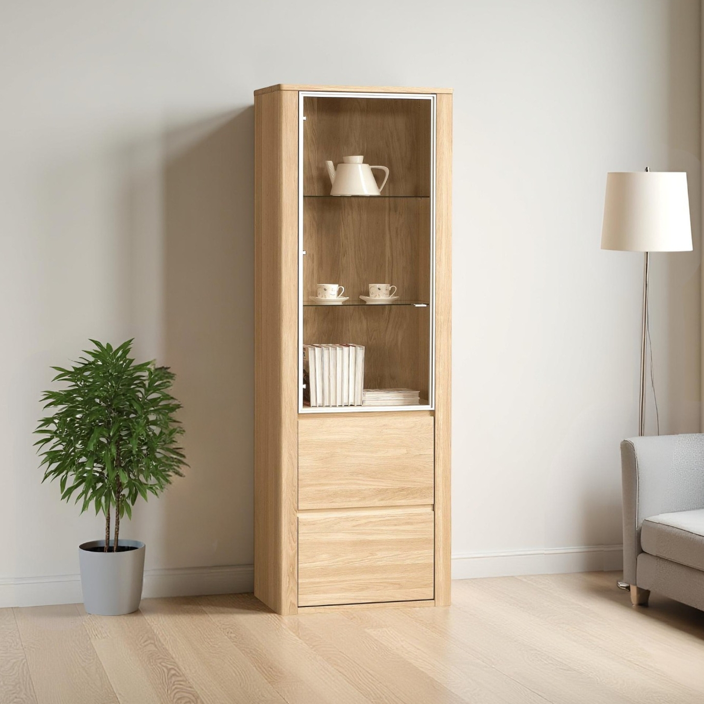 Odkryj pojemność i elegancki design z witryną pojedynczą dębową Orlando w wykończeniu olej bianco – idealnym rozwiązaniem do salonu lub jadalni. Ta wysoka i smukła witryna to doskonały wybór dla tych, którzy cenią sobie połączenie funkcjonalności z naturalnym pięknem drewna. Witryna Orlando, z jej jasnym, rozbielonym wykończeniem, wniesie do Twojego wnętrza lekkość i skandynawski styl, oferując mnóstwo miejsca do przechowywania i eksponowania, co jest doskonale widoczne na zdjęciu produktu. Wykonana z wysokiej jakości drewna dębowego i płyty fornirowanej, gwarantuje solidność i trwałość na lata.