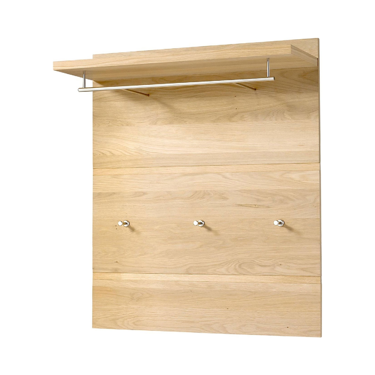 Prezentujemy praktyczny i stylowy panel dębowy Mile, idealne rozwiązanie do organizacji przestrzeni w Twoim przedpokoju. Ten funkcjonalny mebel w naturalnym odcieniu dębu łączy w sobie estetykę i wygodę użytkowania. Wykonany z wysokiej jakości materiałów, z frontem z litego dębu sęcznego i korpusem z płyty wiórowej pokrytej fornirem dębowym na zewnątrz oraz folią bianco wewnątrz, gwarantuje trwałość i elegancki wygląd. Na załączonym zdjęciu widoczny jest panel o szerokości 85 cm, wysokości 100 cm i głębokości 31,5 cm, wyposażony w praktyczną półkę górną oraz trzy solidne uchwyty na ubrania, umożliwiające wygodne przechowywanie kurtek, płaszczy i innych elementów garderoby.