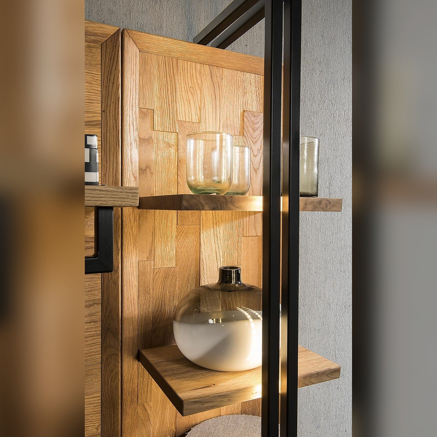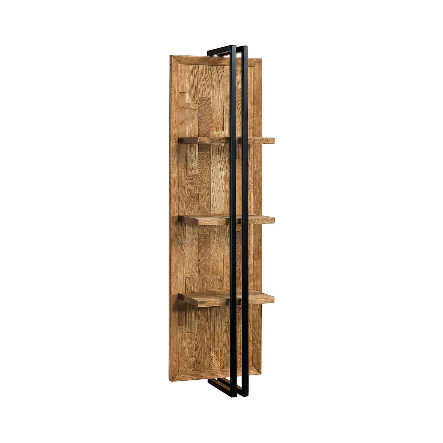 Odkryj nowoczesną elegancję z naszym panelem z półkami Vigo w odcieniu dąb olej natura. Ten stylowy panel ścienny z półkami wykonany jest z wysokiej jakości litego drewna dębowego na frontach oraz fornirowanej płyty wiórowej na korpusie, co zapewnia trwałość i estetyczny wygląd. Naturalna okleina w kolorze dąb natura, wykończona woskiem lub olejem i szczotkowana, podkreśla unikalną teksturę drewna. Widoczny na zdjęciu pionowy panel wyposażony jest w kilka praktycznych półek wspartych na metalowej konstrukcji, idealnych do przechowywania książek, dekoracji czy innych drobiazgów, dodając charakteru każdemu wnętrzu.
