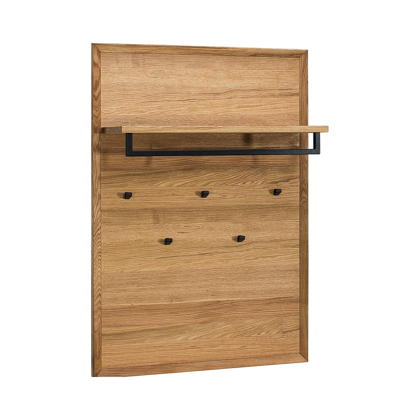 Panel z półkami Vigo to doskonały wybór dla tych, którzy cenią sobie połączenie praktyczności z estetyką. Jest to idealne rozwiązanie do organizacji przestrzeni w przedpokoju, gdzie pozwoli na utrzymanie porządku i łatwy dostęp do najpotrzebniejszych rzeczy. Półka dębowa może służyć do odłożenia kluczy, portfela czy innych drobiazgów, natomiast haczyki do powieszenia kurtek, szali czy toreb. Naturalna okleina z forniru dąb natura oraz staranne wykończenie powierzchni sprawiają, że panel jest nie tylko funkcjonalny, ale także stanowi piękny element dekoracyjny. Bez względu na to, czy zostanie umieszczony samodzielnie, czy w towarzystwie innych mebli z kolekcji Vigo, z pewnością wzbogaci aranżację, tworząc spójne i harmonijne otoczenie.