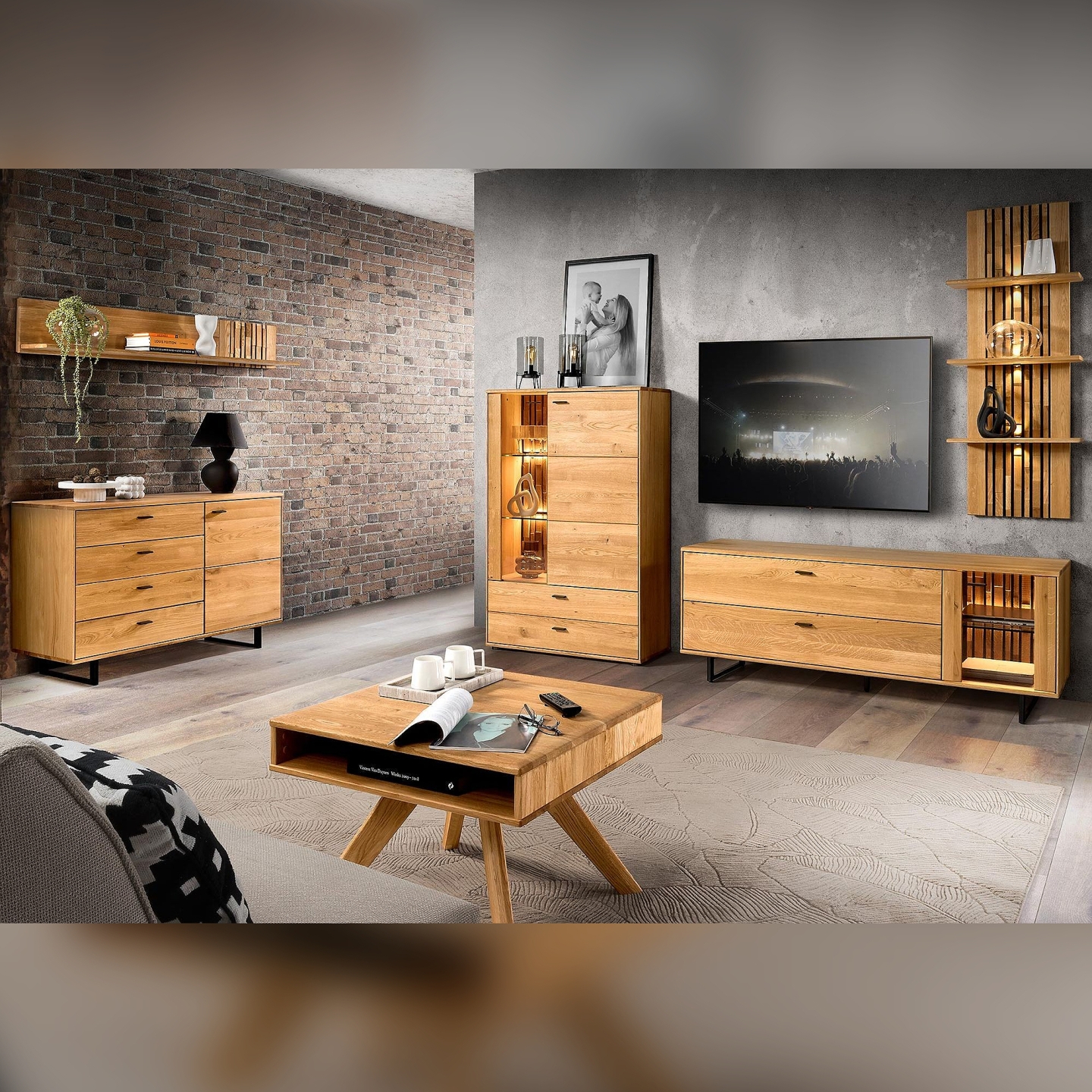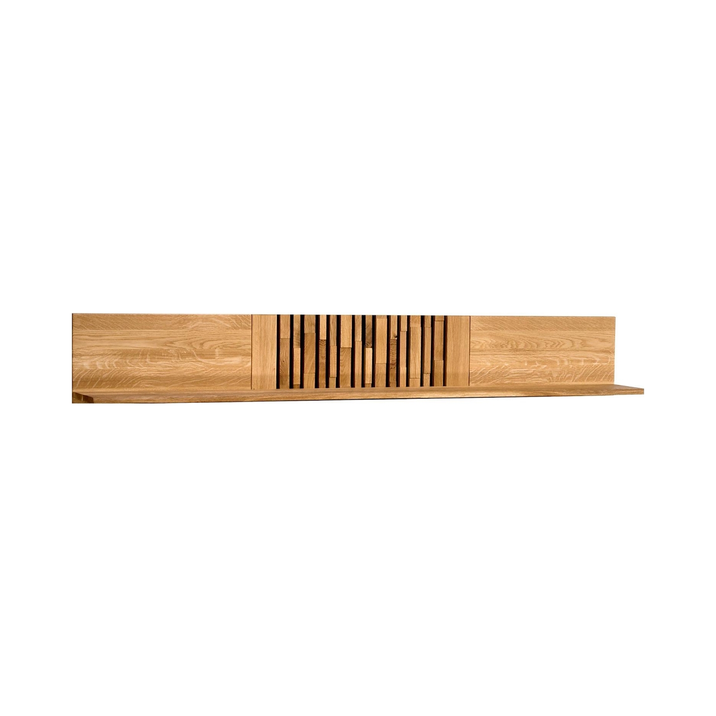 Prezentujemy dębową półkę wiszącą Tramonto II, która jest idealnym połączeniem funkcjonalności i naturalnego piękna, doskonale uzupełniając nowoczesne i klasyczne wnętrza. Półka została wykonana z dbałością o najwyższą jakość, z frontami, wieńcem górnym i dolnym z litego dębu sęcznego, co zapewnia jej trwałość i wyjątkowy charakter. Korpus, boki i półki wykonane są z płyty wiórowej fornirowanej dębem, co dodatkowo wzmacnia konstrukcję. Naturalne wybarwienie dębu oraz wykończenie olejem natura i szczotkowanie podkreślają unikalny rysunek drewna, w tym jego sęki, które są naturalną cechą i dodają meblowi oryginalności. Na załączonym zdjęciu widać półkę o solidnej konstrukcji, z centralnie umieszczonymi, pionowymi, ozdobnymi listwami, które dodają jej nowoczesnego charakteru.