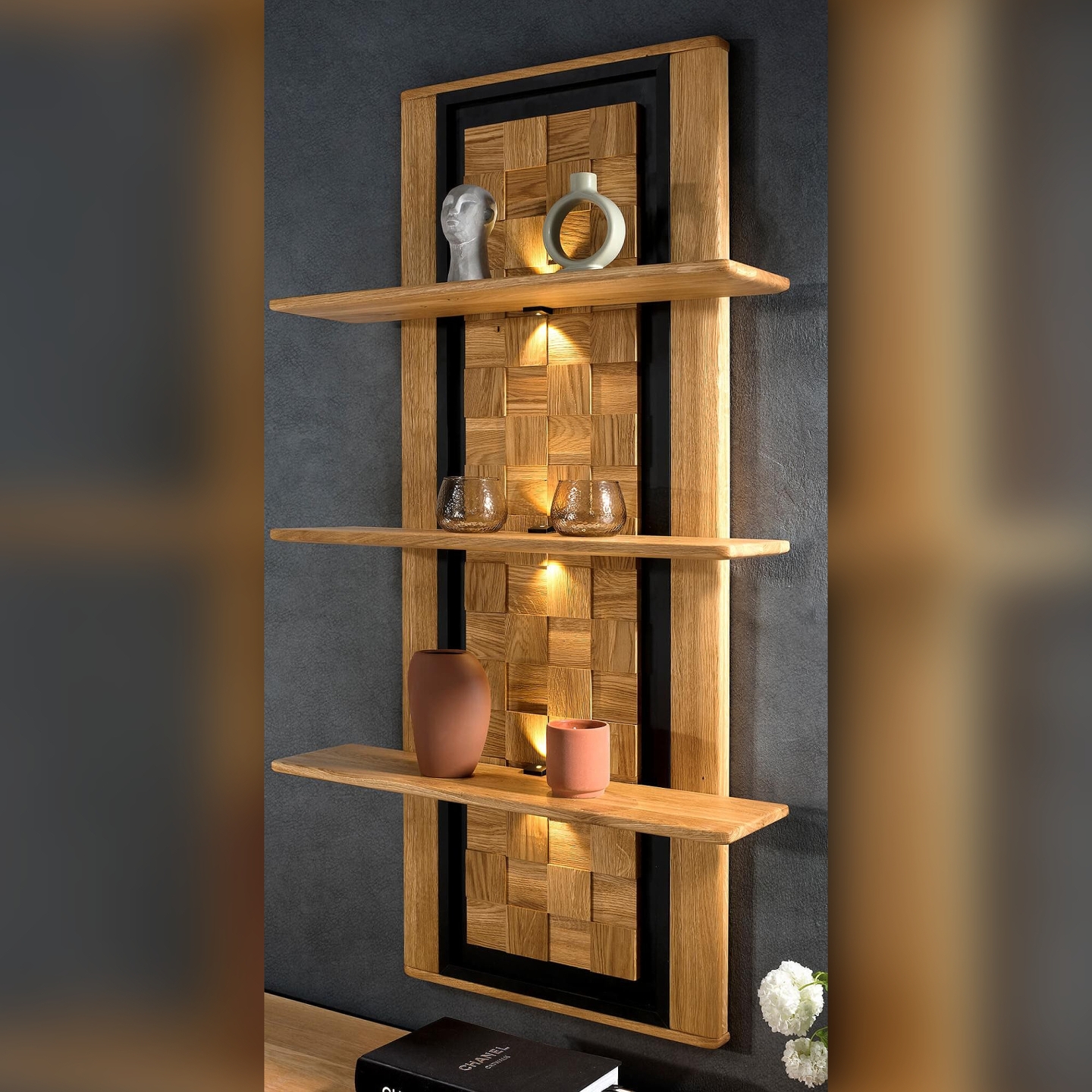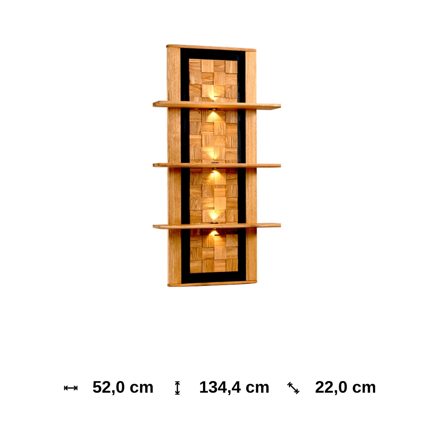 Wprowadź do swojego wnętrza wyjątkowy styl i funkcjonalność z panelem wiszącym nowoczesnym Luna, który stanowi idealne połączenie naturalnego drewna i innowacyjnego designu. Prezentowany na zdjęciu panel, z widocznymi podświetlanymi półkami i ozdobnymi elementami z dębu sęcznego, to doskonałe rozwiązanie do eksponowania ulubionych przedmiotów czy kolekcji. Wykonany z dębu sęcznego ciętego po długości, panel Luna charakteryzuje się solidnością i unikalnym wyglądem. Jego szczotkowana powierzchnia i wykończenie naturalnym olejem podkreślają autentyczność drewna, wydobywając jego głębię i ciepło. Zintegrowane oświetlenie, które jest wliczone w cenę, dodaje panelowi wyjątkowego blasku i pozwala wyeksponować jego zawartość, tworząc nastrojowy klimat w pomieszczeniu. Panel jest dostarczany w całości, zmontowany i gotowy do natychmiastowego zawieszenia, co oszczędza Twój czas i wysiłek.