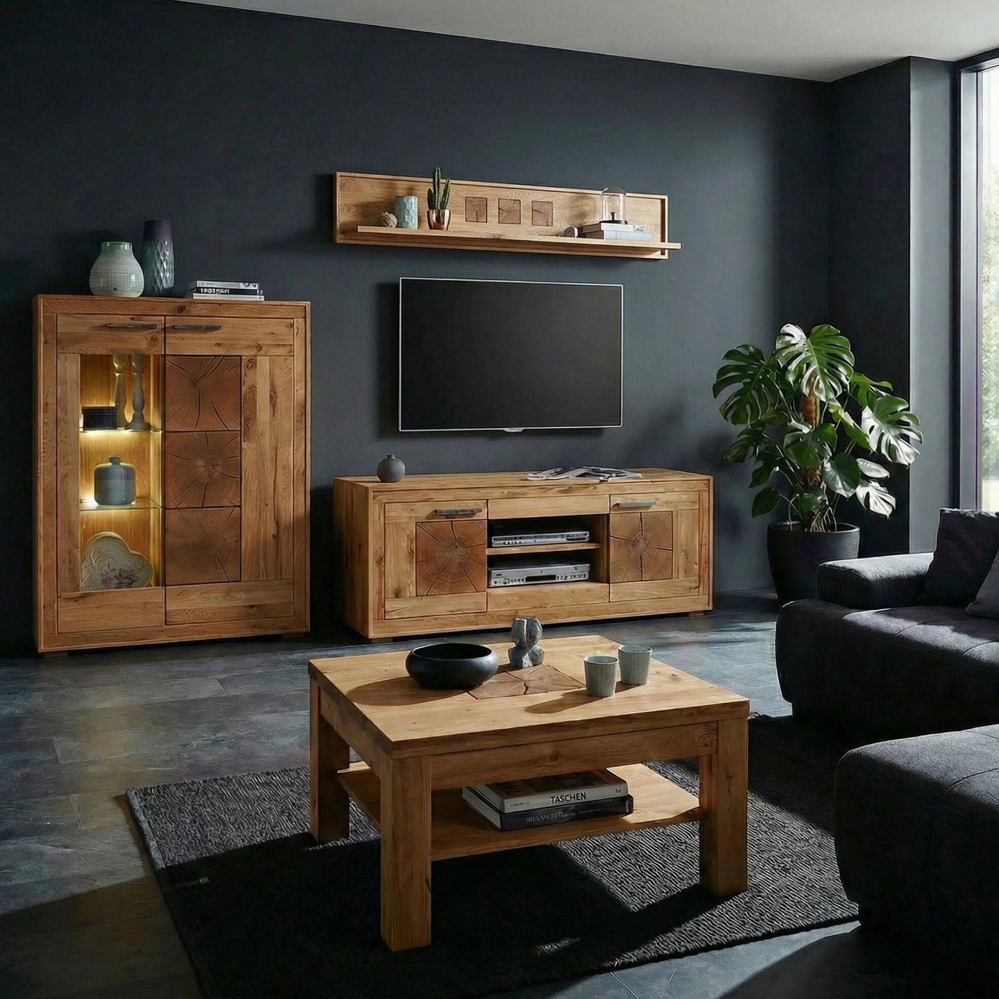 Szerokość 178 cm zapewnia maksymalną przestrzeń ekspozycyjną, idealną do długich ścian w salonie. Solidna konstrukcja bez problemu utrzymuje większe obciążenie, a prosty montaż sprawia, że półka dobrze sprawdzi się w salonie, jadalni lub biurze, wprowadzając do wnętrza ciepło prawdziwego drewna.