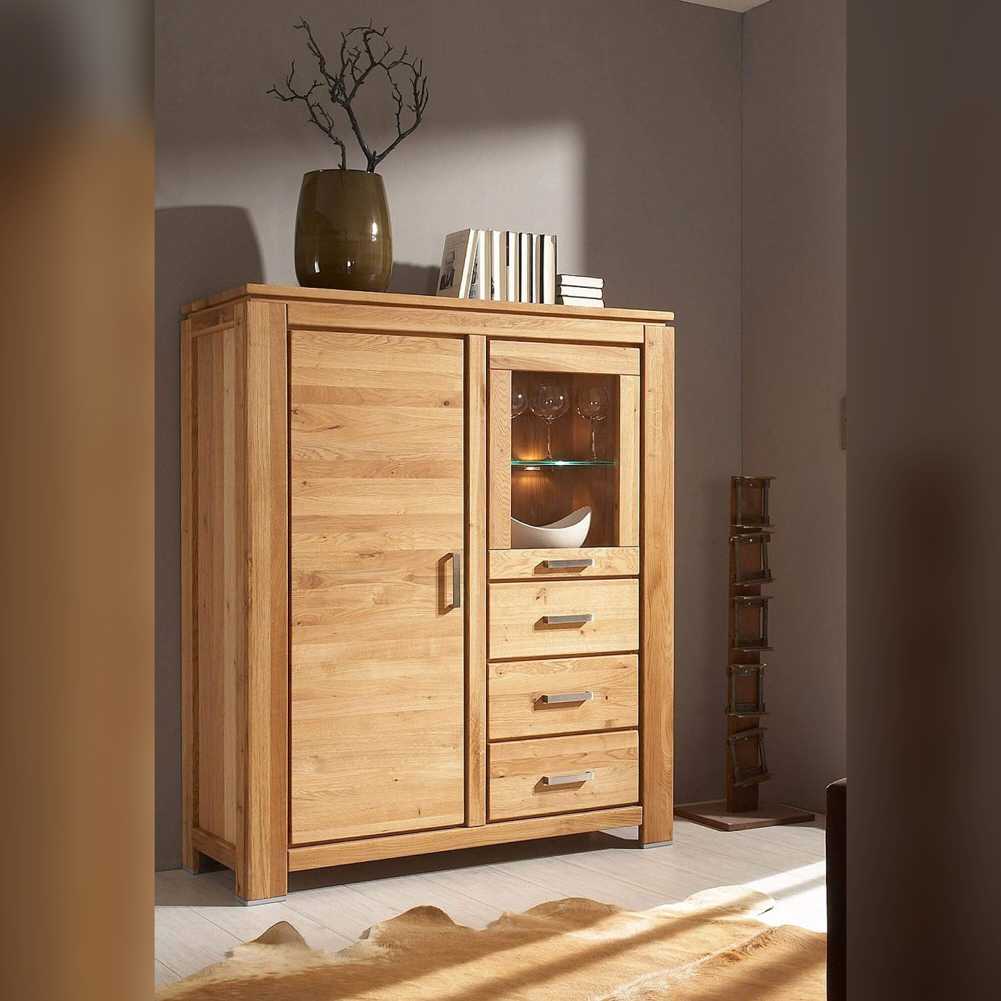 Poznaj niezrównaną funkcjonalność i naturalne piękno, jakie oferuje kredens I dąb sęczny Faro – idealny wybór do salonu lub jadalni. Ten wyjątkowy mebel łączy w sobie surowy urok sęcznego drewna dębowego z nowoczesnym designem, tworząc przestrzeń zarówno do przechowywania, jak i do eksponowania. Widoczny na zdjęciu kredens Faro, z jego charakterystycznymi elementami takimi jak przeszklona część i pełne drzwi, jest prawdziwą ozdobą każdego wnętrza, dodając mu ciepła i elegancji. Wykonany z dbałością o detale, z korpusem z forniru dębowego i frontami z masywu dębu sęcznego, gwarantuje solidność i trwałość na lata.