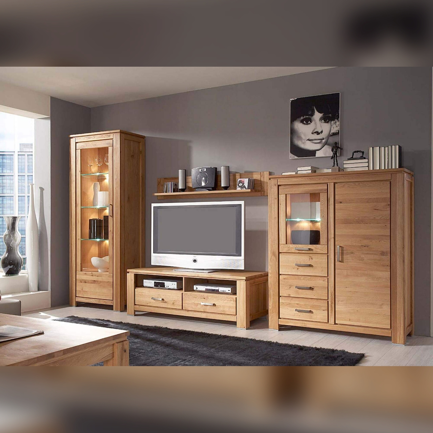 | Materiał wykonania | Front: masyw dąb sęczny; Korpus: płyta wiórowa fornir dąb sęczny |