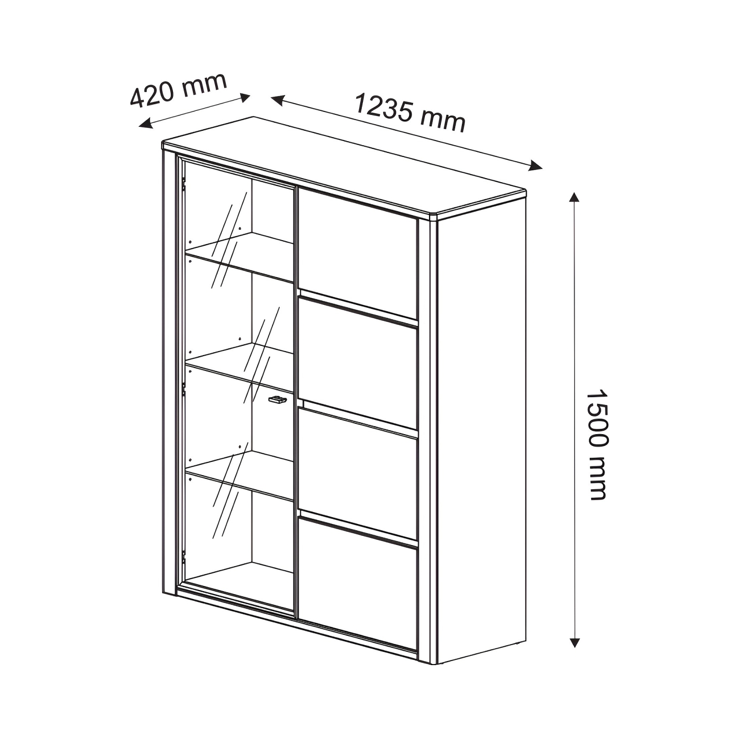 | Materiał wykonania | Korpus: płyta wiórowa fornir dąb; Front: masyw dąb |