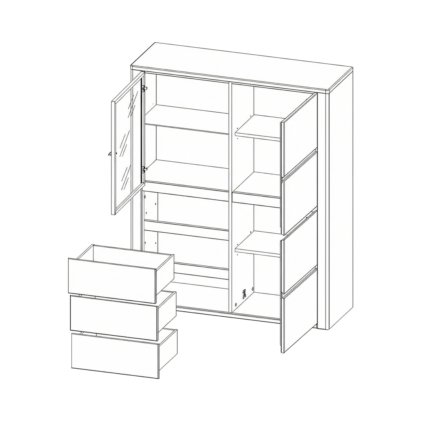 | Cechy dodatkowe | 1x drzwi szklane, 2x drzwi drewniane, 3x szuflady |