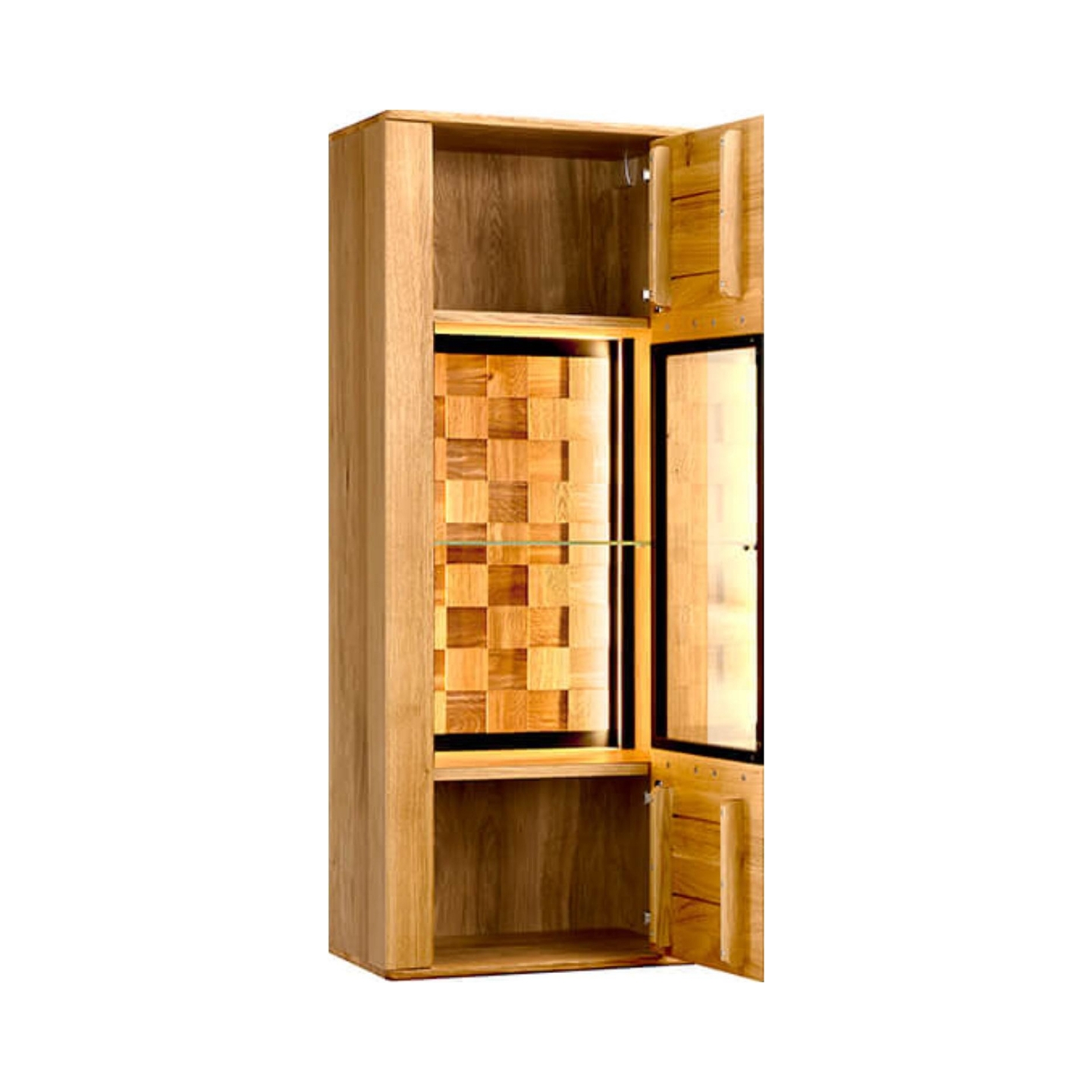 Szafka wisząca Luna to więcej niż tylko mebel do przechowywania – to element dekoracyjny, który wniesie do Twojego domu ciepło i styl. Nowoczesne meble drewniane, takie jak szafka Luna, są doskonałym wyborem dla osób poszukujących trwałych i estetycznych rozwiązań. Unikalna tekstura szczotkowanej powierzchni i naturalne wykończenie olejem nadają szafce autentyczności, a widoczne na zdjęciu segmenty drewna układające się w mozaikowy wzór dodają jej niezwykłego charakteru. Bez względu na to, czy umieścisz ją w salonie, jadalni czy sypialni, szafka Luna będzie przyciągać wzrok i służyć Ci przez długie lata. Jej kompaktowe wymiary (szerokość 52,6 cm, wysokość 134,4 cm, głębokość 39 cm) sprawiają, że idealnie sprawdzi się nawet w mniejszych pomieszczeniach, oferując jednocześnie sporo miejsca do przechowywania.