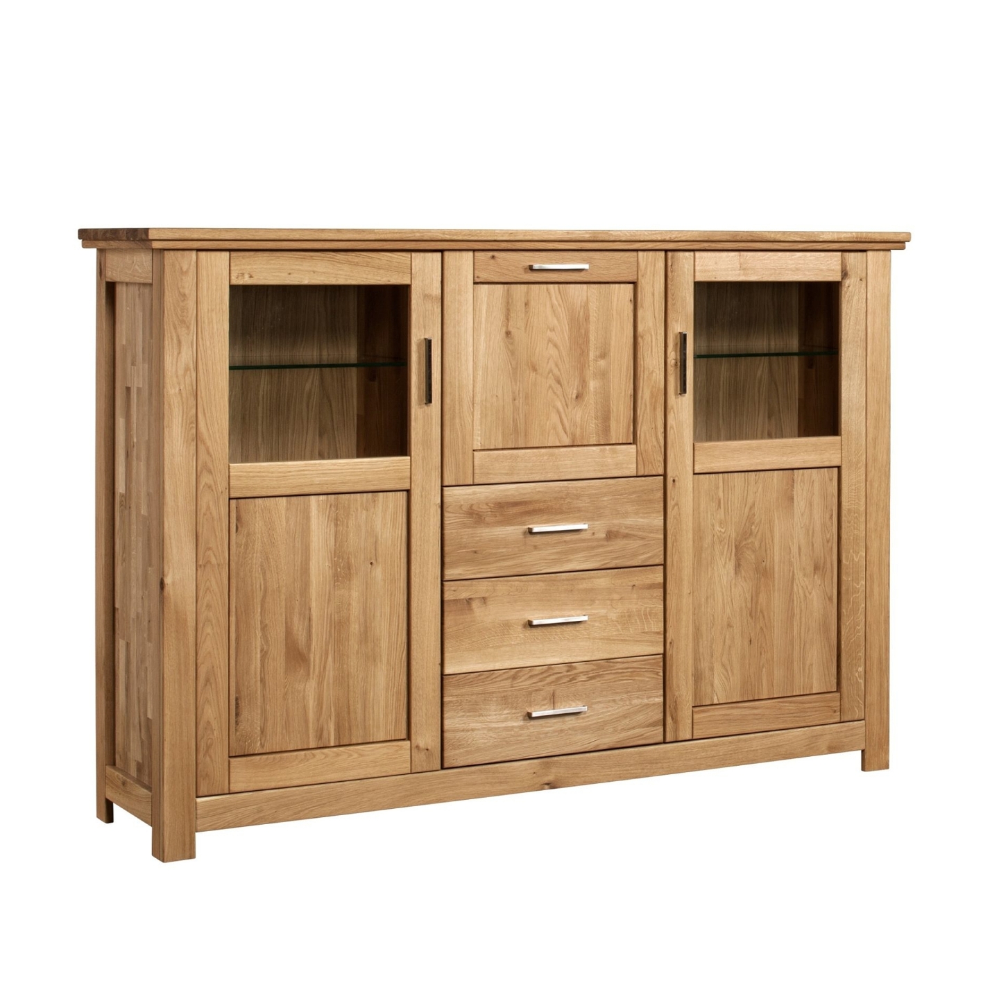 Wielofunkcyjny kredens z barkiem olej natura Porto to niezwykle atrakcyjny wizualnie mebel, łączący w sobie funkcję witryny, barku, zestawu szuflad i zamykanych szafek. Sprawdzi się w eleganckim wnętrzu salonu, jak i gabinetu, gdzie można wyeksponować ulubione alkohole i szkło. Oczywiście mebel może też pełnić funkcję kredensu z ekspozycją zastawy stołowej. Kredens jest widoczny na zdjęciu i charakteryzuje się naturalnym wybarwieniem dębu.