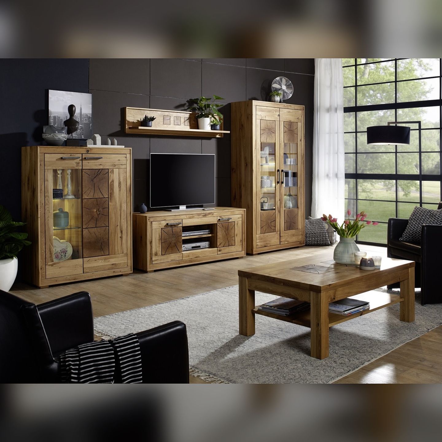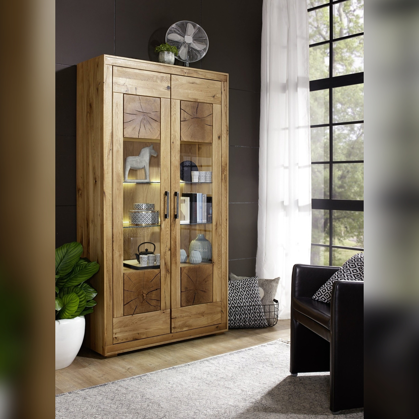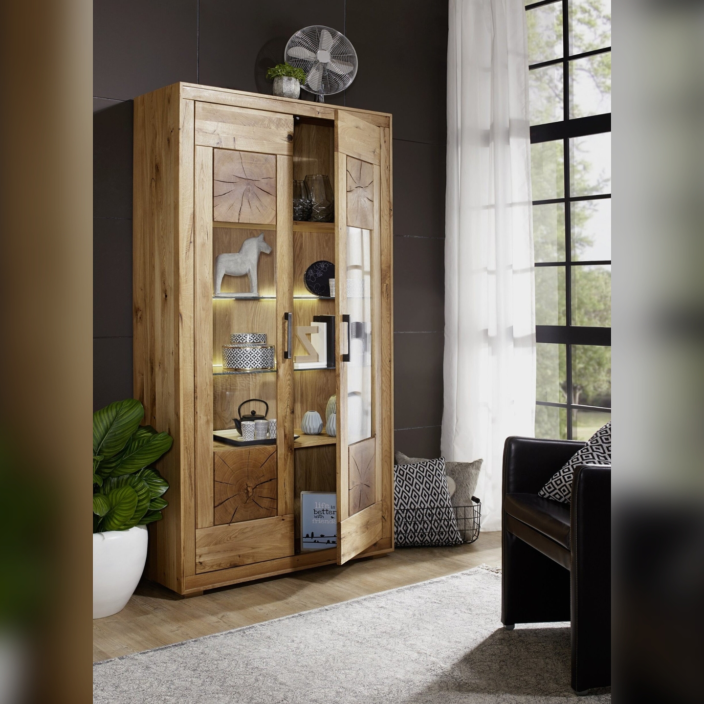 Witryna przyjeżdża w całości zmontowana, bez potrzeby składania czy klejenia. Matowy olej zabezpiecza powierzchnię, a jednocześnie pozwala zachować naturalną fakturę drewna. To mebel, który od razu staje się częścią wnętrza.