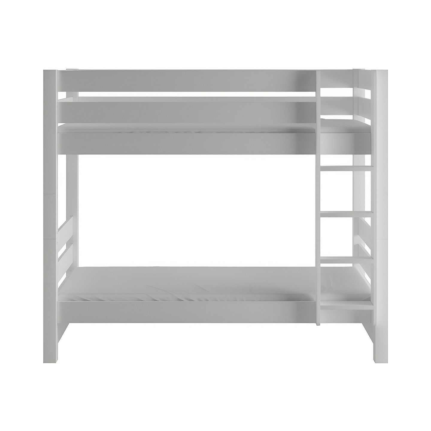 Białe łóżko piętrowe Jan to solidny mebel z drewna sosnowego, który gwarantuje bezpieczeństwo i maksymalne wykorzystanie przestrzeni w nowoczesnej aranżacji.