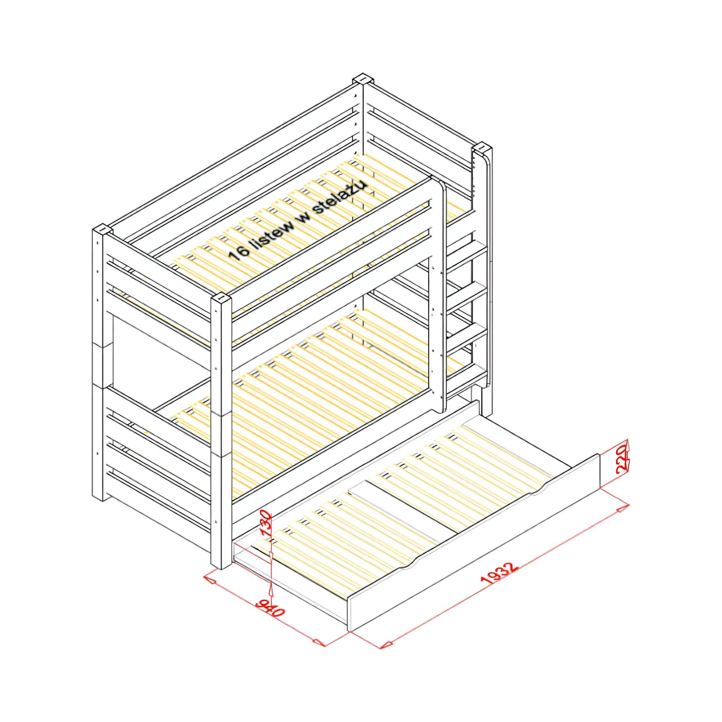 Zapewnij sobie dodatkową przestrzeń do spania i maksymalnie wykorzystaj potencjał pokoju dziecięcego dzięki tej praktycznej szufladzie na materac. To niezastąpiony element wyposażenia, który pozwoli Ci szybko przygotować nocleg dla gościa lub rodzeństwa. Szuflada, widoczna na zdjęciu, charakteryzuje się surowym, naturalnym wykończeniem drewna sosnowego, co podkreśla jej solidny i ekologiczny charakter.