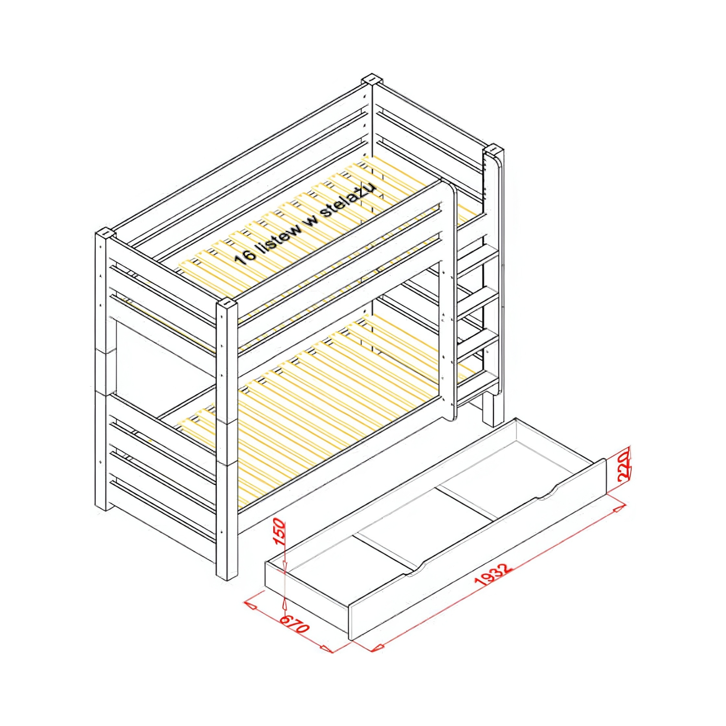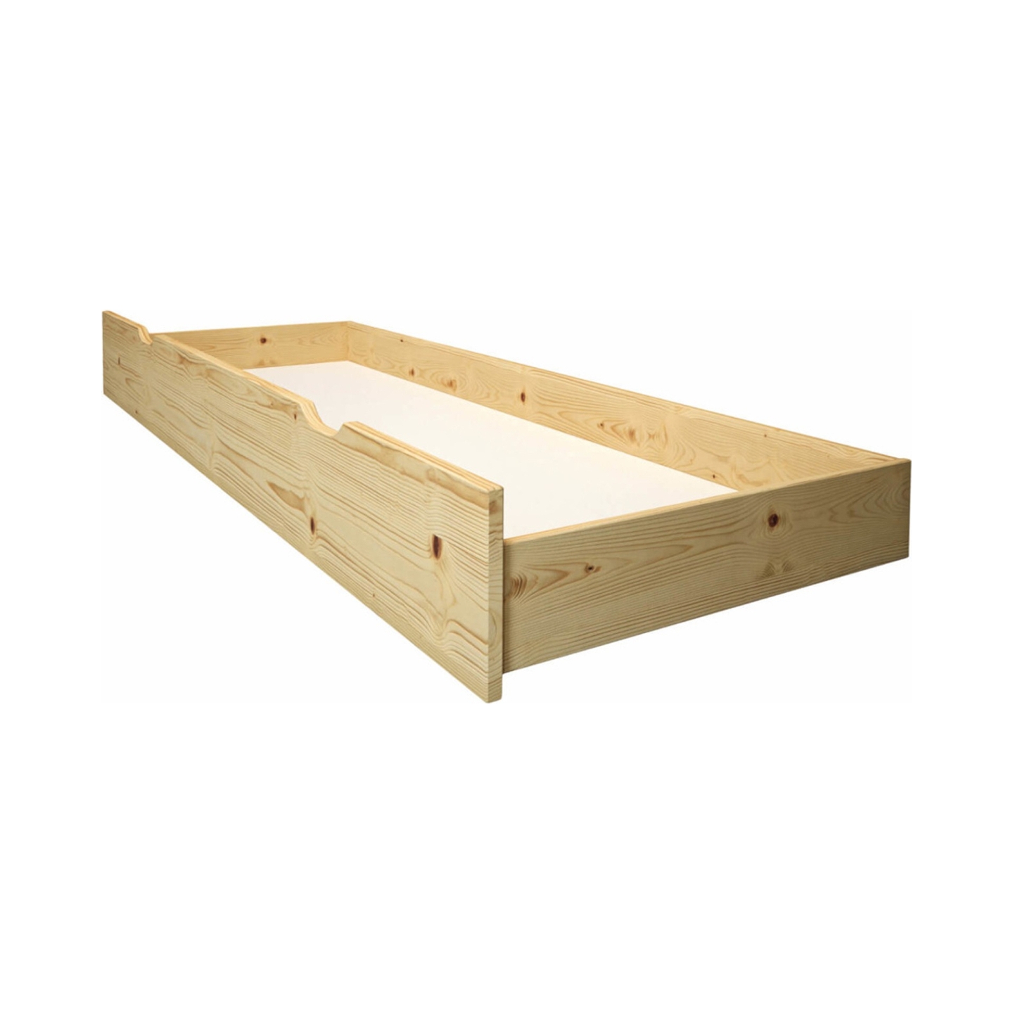 Szuflada na pościel to funkcjonalny dodatek, który pomoże Ci w utrzymaniu porządku w pokoju dziecięcym lub sypialni. Zaprojektowana z myślą o łóżkach piętrowych, idealnie się w nich mieści, tworząc spójną i elegancką całość. Wykonana z naturalnego drewna sosnowego, w surowym wykończeniu, dodaje wnętrzu ciepła i naturalnego charakteru, a jednocześnie zapewnia solidność i trwałość. Jest to doskonałe rozwiązanie do przechowywania pościeli, zabawek, ubrań, a także innych drobiazgów.