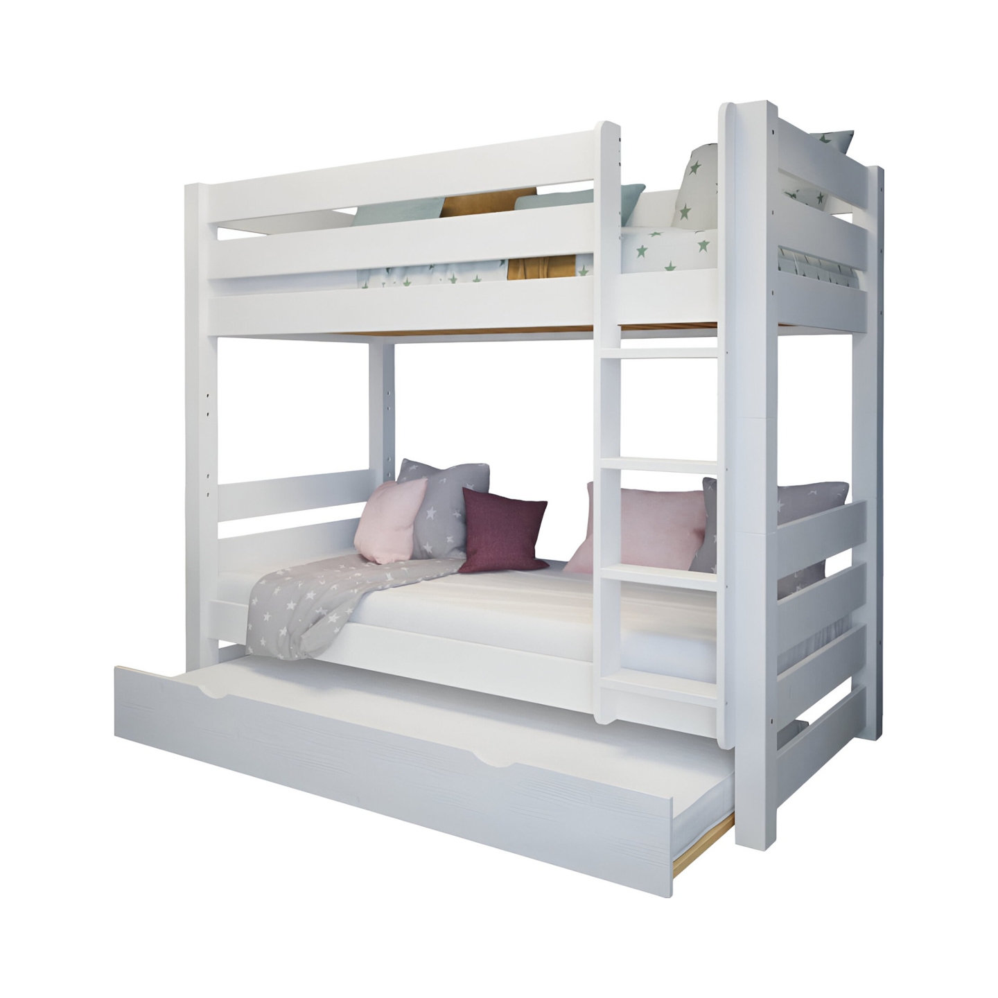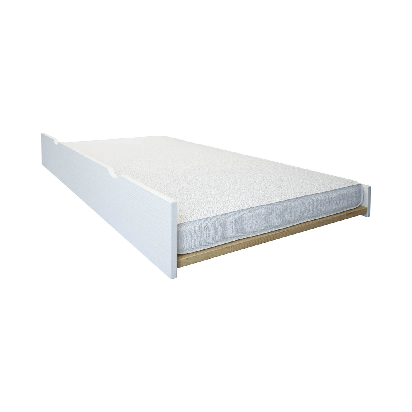 Zaprojektowana z myślą o funkcjonalności i eleganckim wyglądzie, szuflada na materac to idealne rozwiązanie do pokoju dziecięcego lub gościnnego. Stanowi doskonałe uzupełnienie łóżek, harmonijnie komponując się z ich minimalistycznym designem. Wykonana z solidnego drewna i pomalowana na biało, szuflada wniesie do każdego wnętrza świeżość i lekkość. To niezastąpiony element, gdy potrzebujesz dodatkowego miejsca do spania, a jednocześnie chcesz zachować porządek i przestrzeń.
