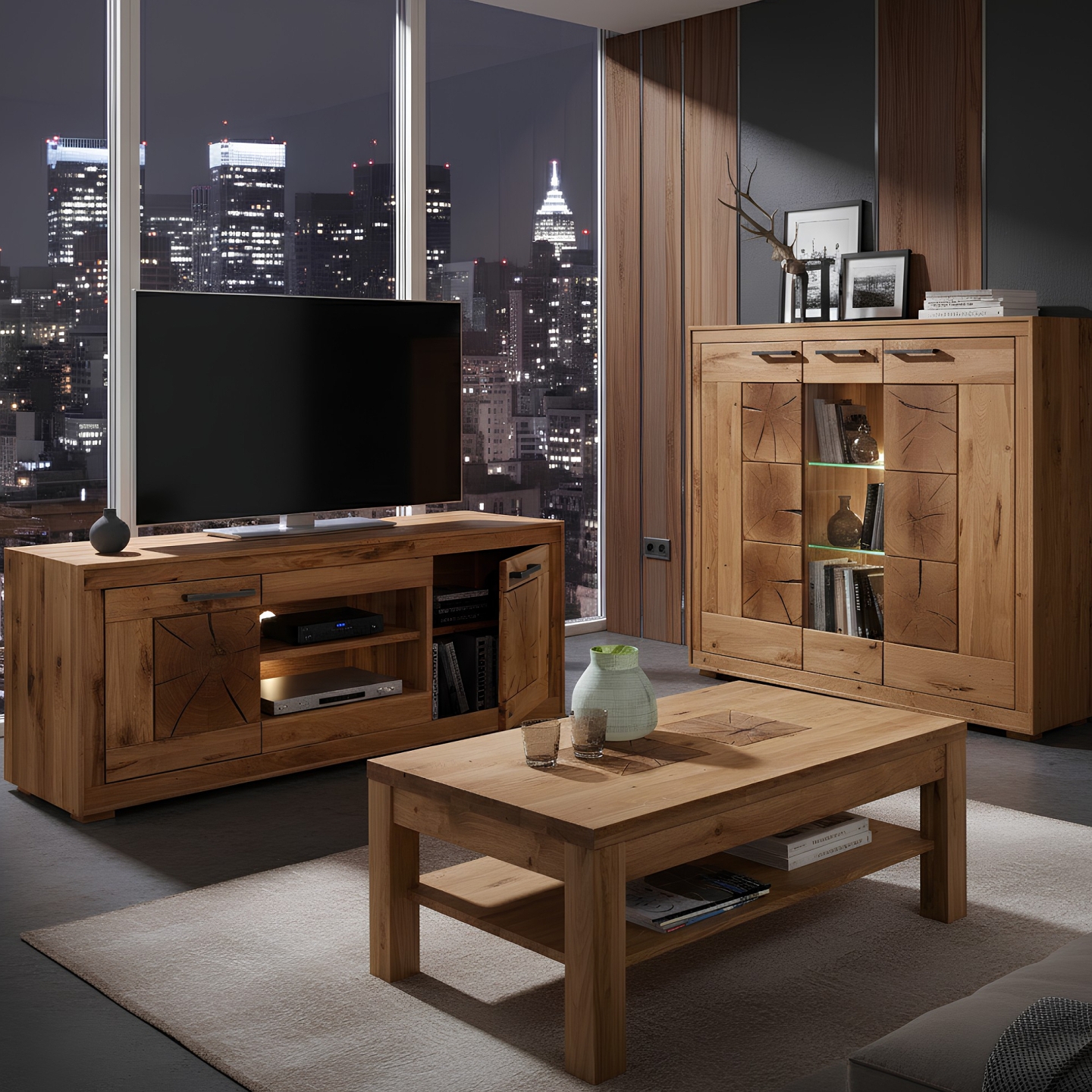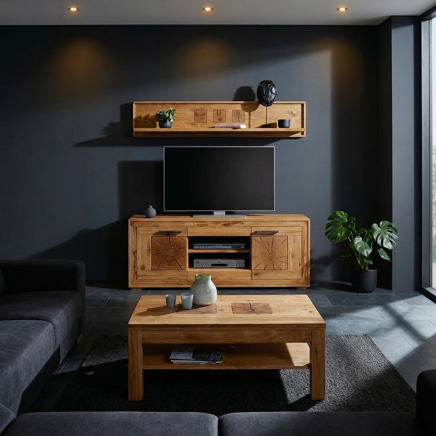 ✅ Gdy szukasz stabilnej szafki RTV z litego dębu, odpornej na ciężki telewizor i sprzęt.