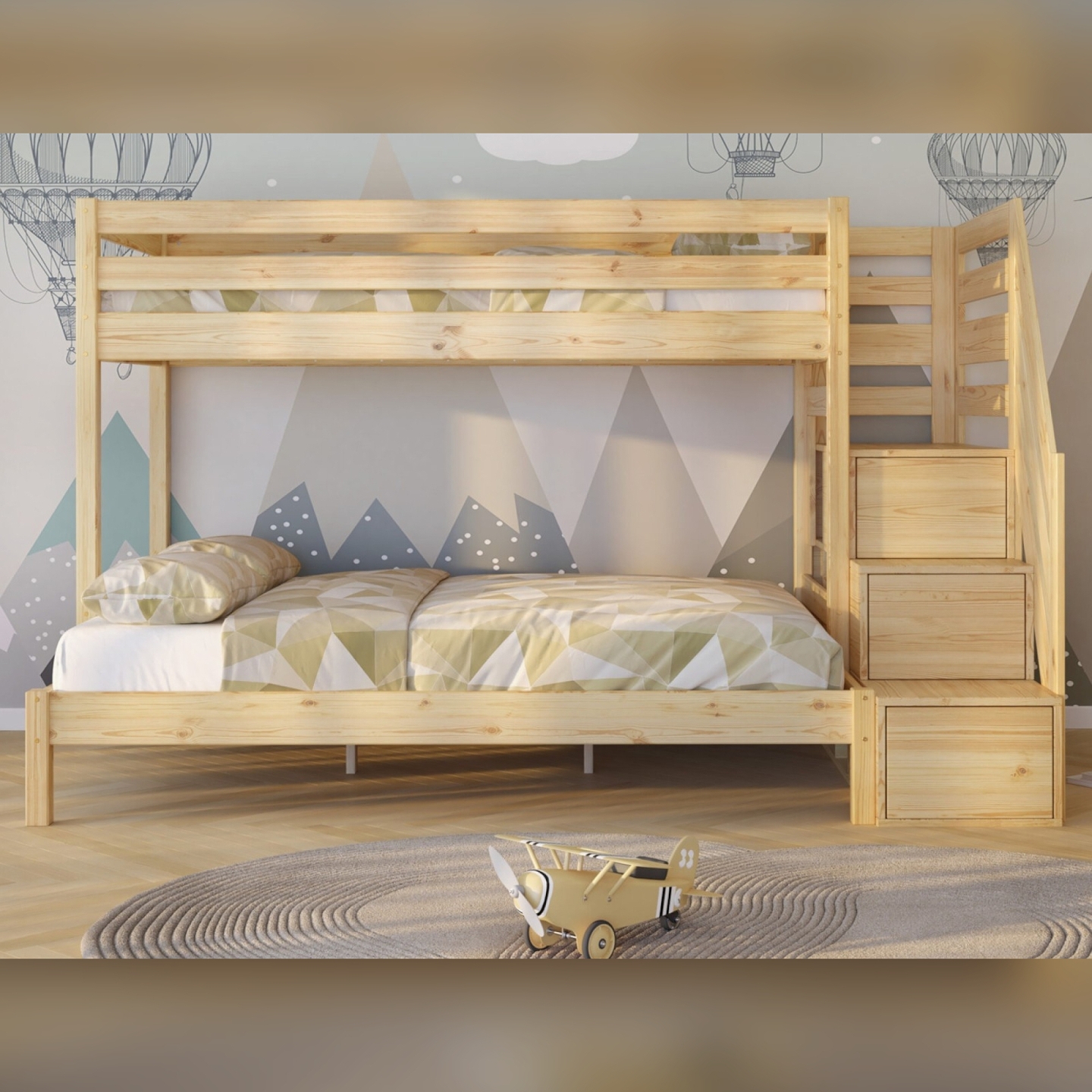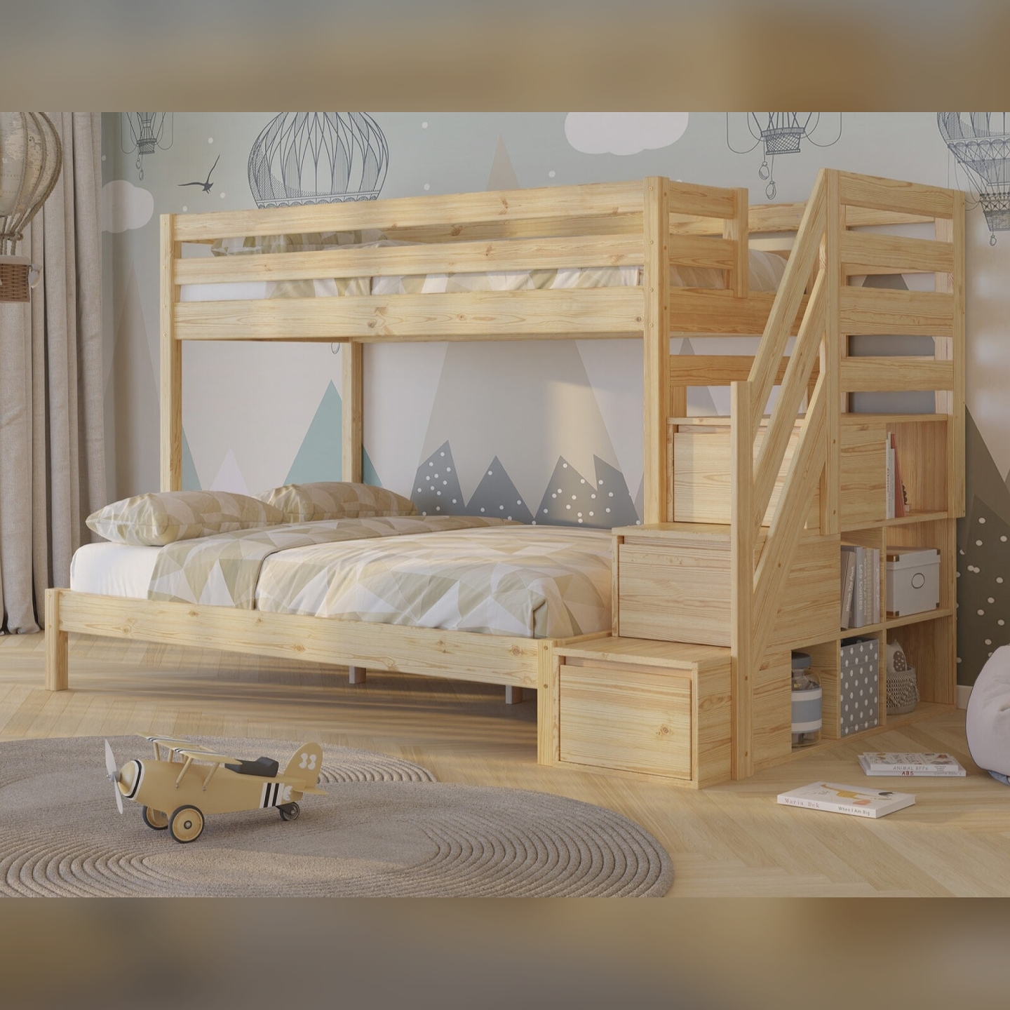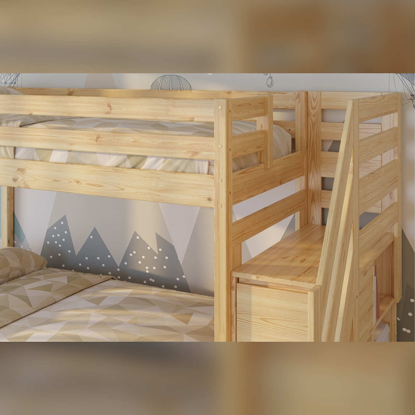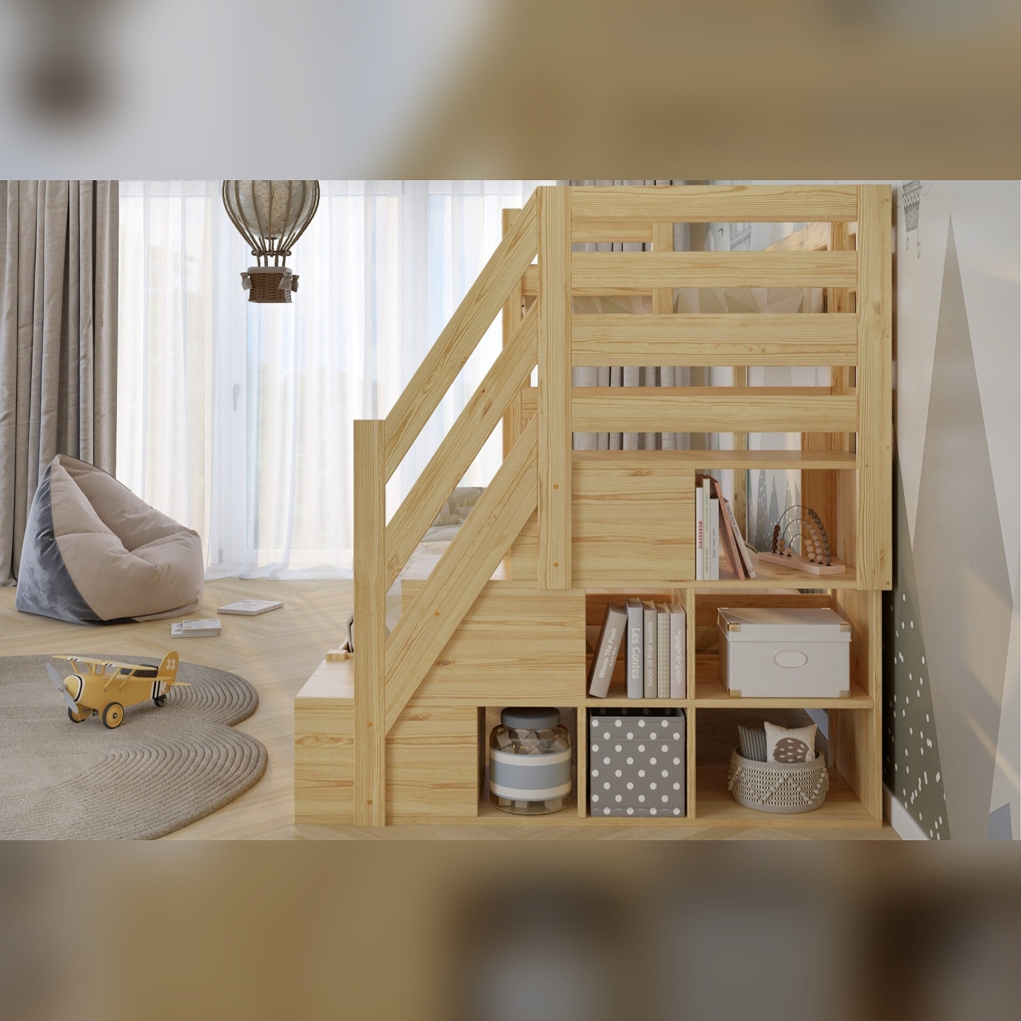 Trzyosobowe łóżko piętrowe ze schodkami Sen Trio, lakierowane, to naturalne piękno litego drewna sosnowego, które zostało zabezpieczone bezbarwnym lakierem. Stabilna konstrukcja ze schodkami wyposażonymi w praktyczne schowki zapewnia maksimum funkcjonalności i bezpieczeństwa w pokoju Twoich dzieci.