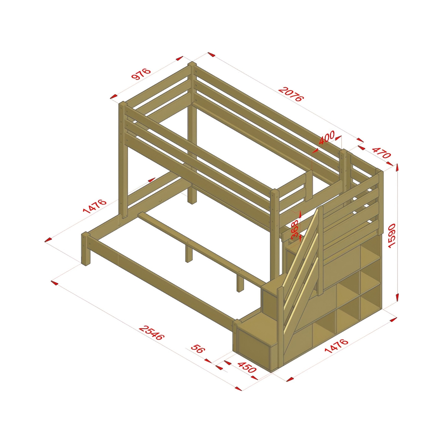 Łóżko Sen Trio pozwala maksymalnie wykorzystać przestrzeń – dolna część oferuje szerokie miejsce do spania lub relaksu dzięki solidnym schodkom, szerokiemu dolnemu łóżku i górnej barierce ochronnej.