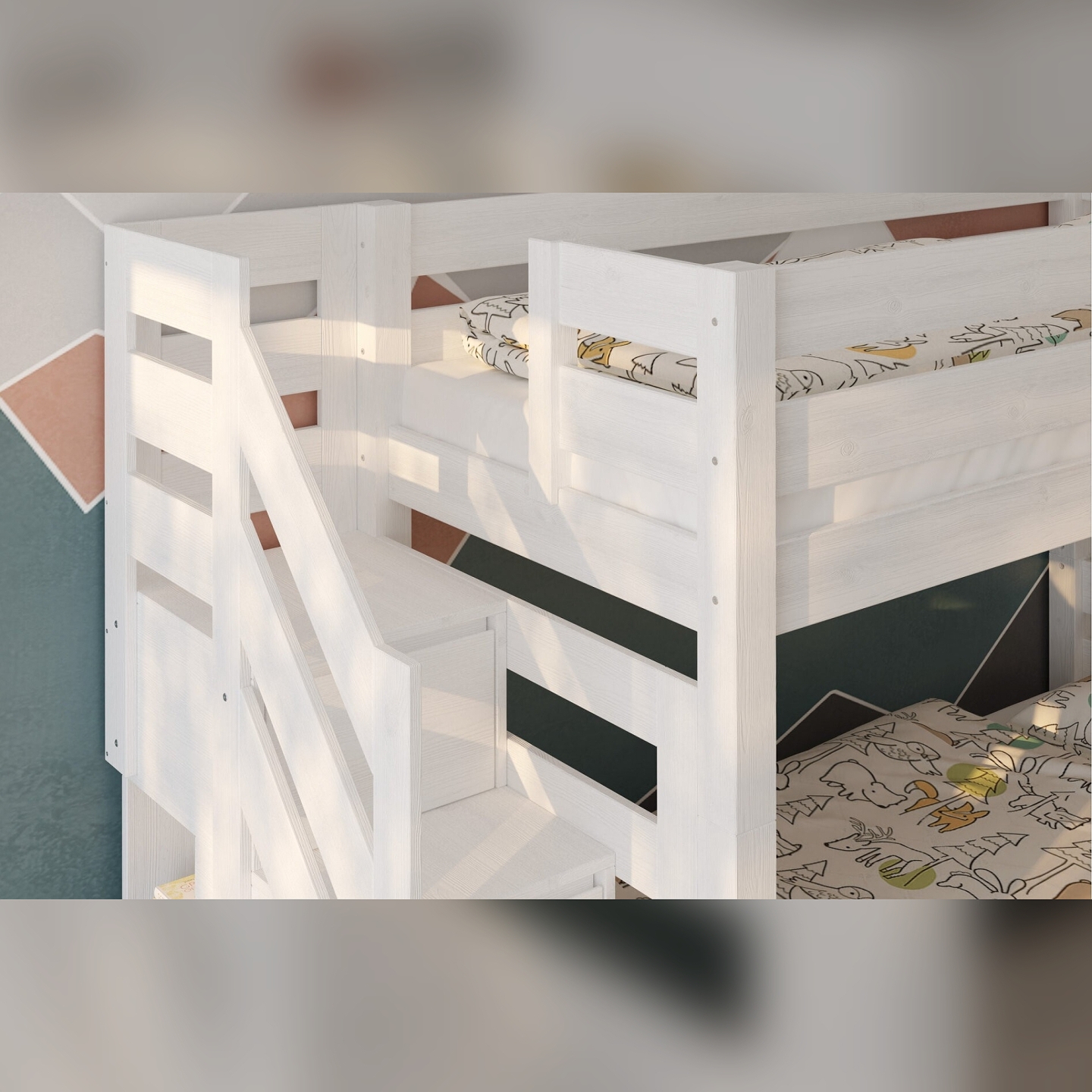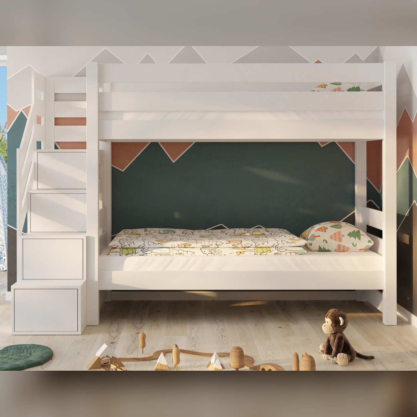 ✅ Dla rodzin, które chcą utrzymać porządek – schodki z szufladami rozwiązują problem zabawek i pościeli.