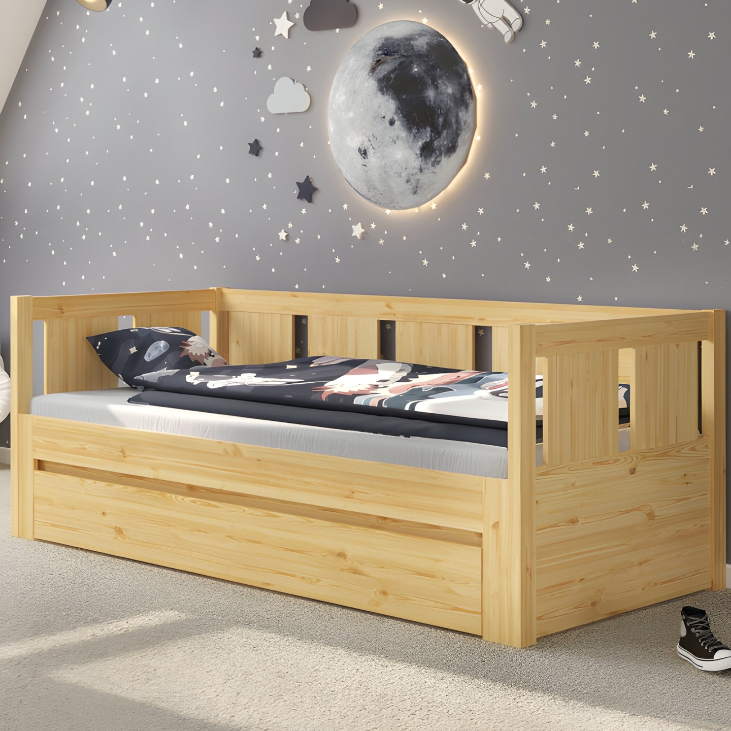Łóżko sosnowe Monia to idealne połączenie funkcjonalności, bezpieczeństwa oraz uroku naturalnego drewna. Ten wyjątkowy mebel stworzy przytulną i zdrową atmosferę w pokoju każdego dziecka. Wykonane z wysokiej jakości drewna sosnowego, łóżko gwarantuje wyjątkową trwałość oraz solidność. Drewno sosnowe jest ponadto materiałem ekologicznym, bezpiecznym i przyjaznym alergikom.