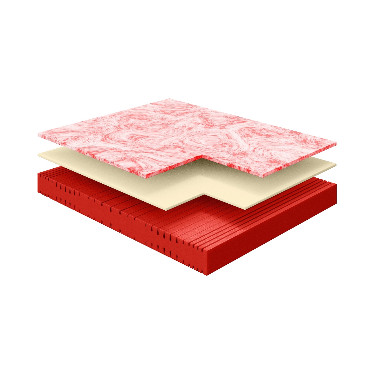 Rdzeń Materaca Pola wykorzystuje zaawansowane pianki, dając Ci pełną kontrolę nad Twoim komfortem. Z jednej strony znajduje się połączenie modelującej się pod wpływem ciepła pianki termoelastycznej VISCO z elastyczną i przewiewną pianką Red Soft. Ta strona zapewnia odprężający komfort, delikatnie otulając sylwetkę i łagodząc punkty nacisku. Druga strona to stabilna i mocno wspierająca pianka hybrydowa, która zawiera precyzyjnie wyprofilowane 7 stref twardości. Strona ta zapewnia stabilne i pewne podparcie dla kręgosłupa, a dzięki otwartej strukturze komórkowej dba również o doskonałą wentylację. Materac Pola to doskonała propozycja dla osób aktywnych, które potrzebują intensywnej regeneracji, zapewniająca idealną równowagę pomiędzy komfortem a stabilnością w jednym, uniwersalnym produkcie. Do użytkowania wymagamy stosowania stelaża sprężynującego, w którym odległość pomiędzy listwami nie jest większa niż 4 cm.