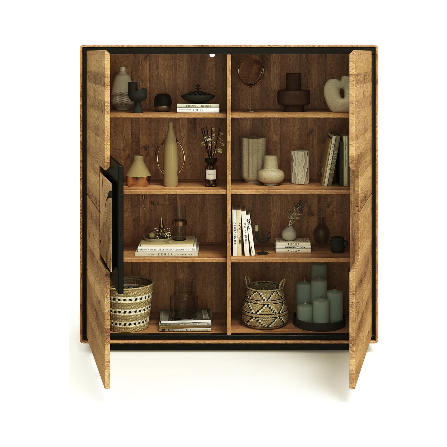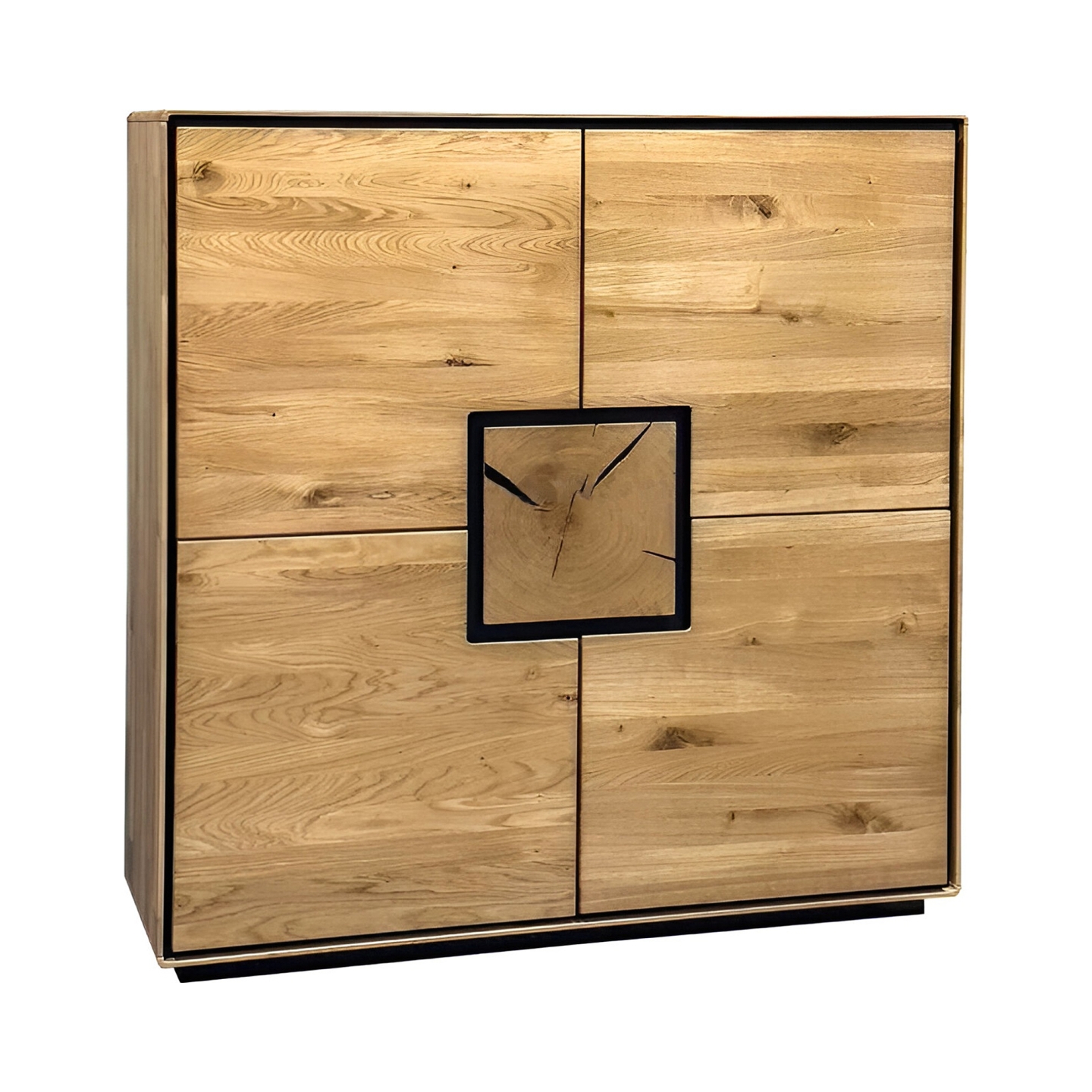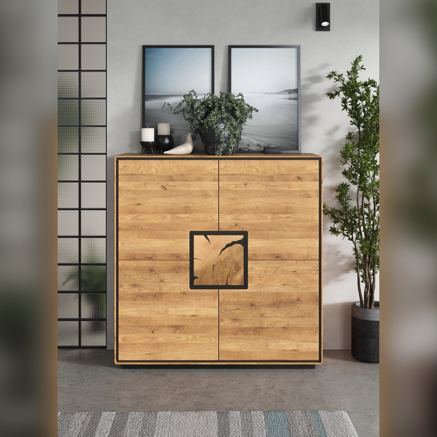 Wybierz Komodę Dębową IV Lunare – wysoki mebel (125 cm) z eleganckim dekorem pośrodku, który dodaje jej wyjątkowego charakteru. Solidna konstrukcja i estetyczne detale sprawiają, że komoda ta stanowi stylowy i funkcjonalny element każdego wnętrza. Wykonanie z litego dębu i wykończenie olejem bezbarwnym podkreśla naturalne piękno dębowego drewna, a czarna podstawa nadaje nowoczesny akcent. Komoda charakteryzuje się niewidocznymi uchwytami (frez od góry drzwiczek) oraz cichym domykiem w drzwiach i szufladach. Mebel jest solidny (waga 81 kg) i dostarczany w całości zmontowany.