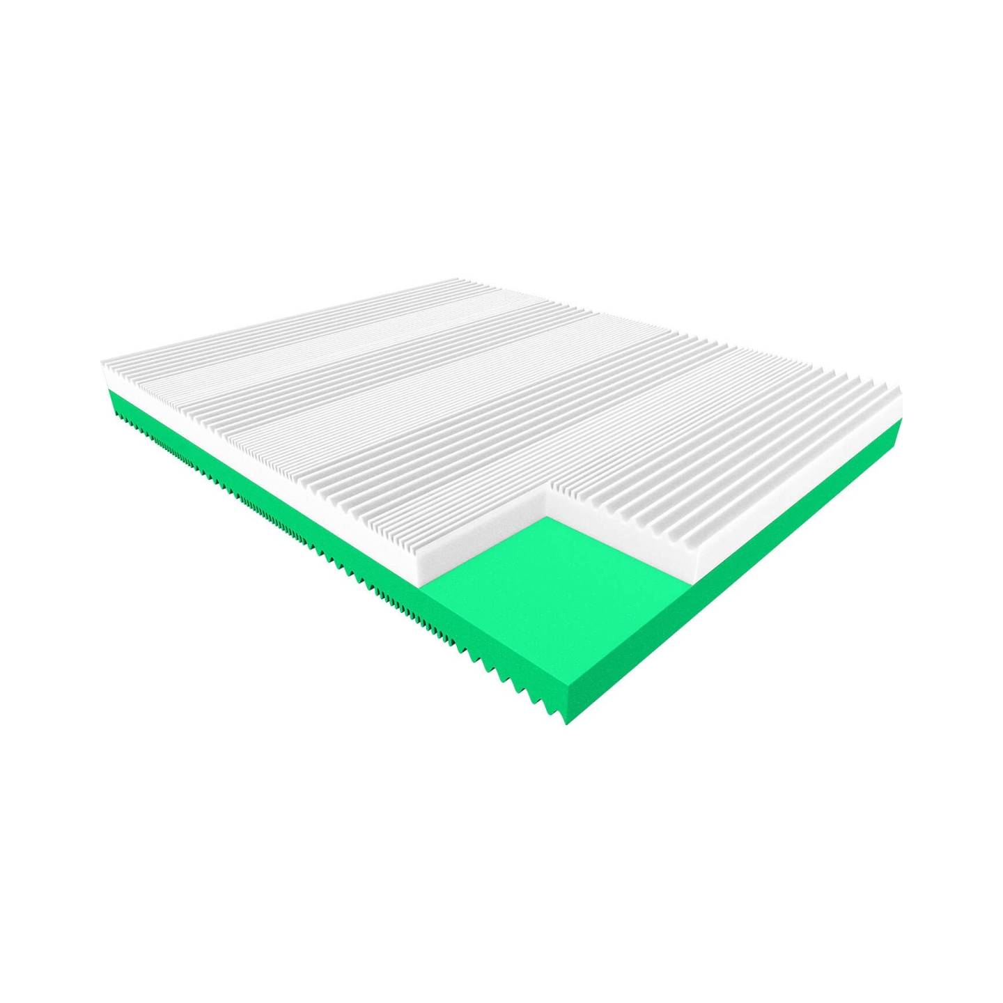 • 7 Stref Twardości i Masaż: Poprzeczne wyprofilowanie obu pianek tworzy 7 stref, które delikatnie masują ciało i zapewniają punktowe dopasowanie, utrzymując kręgosłup w linii prostej.