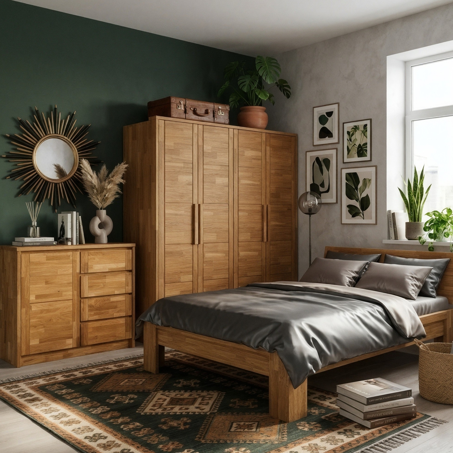 Szafa dębowa Timo IV to coś więcej niż miejsce na ubrania – to inwestycja w najwyższą jakość wyposażenia sypialni. Drewno dębowe, cenione za swoją twardość i szlachetność, w połączeniu z olejowanym wykończeniem, które pozwala drewnu "oddychać", tworzy mebel odporny i łatwy w pielęgnacji. Masywna konstrukcja o głębokości 65 cm jest idealna do przechowywania odzieży na wieszakach bez ryzyka zagnieceń. Choć tył i dna opcjonalnych szuflad wykonane są z płyty HDF, główny korpus i fronty stanowią solidny dąb. Model ten doskonale sprawdzi się jako centralny punkt dużej sypialni. Dzięki opcji domówienia funkcjonalnej komody wewnętrznej i zewnętrznego lustra, z łatwością zaaranżujesz wnętrze szafy, dostosowując je do przechowywania zarówno wiszących ubrań, jak i złożonej bielizny i dodatków, ciesząc się porządkiem na długie lata.