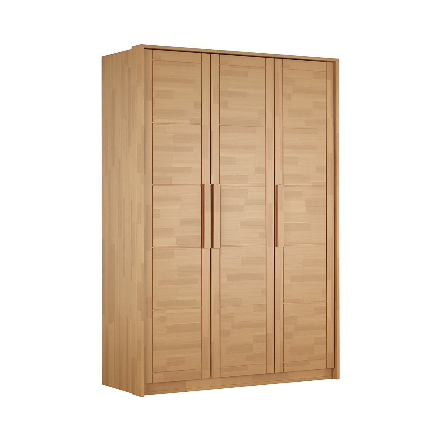 Wybierz solidność i ciepło naturalnego drewna do swojej sypialni dzięki szafie bukowej Timo III. Ten trzydrzwiowy model o szerokości 153,8 cm to idealne połączenie kompaktowych wymiarów z maksymalną funkcjonalnością, doskonale sprawdzające się w średnich i mniejszych pomieszczeniach. Szafa została wykonana z twardego drewna bukowego, które wykończono bezbarwnym lakierem. Lakier ten skutecznie chroni powierzchnię, jednocześnie pięknie eksponując naturalny, jasny odcień i unikalny wzór frontów z klejonych bukowych lameli, widoczny na załączonym zdjęciu. Dzięki imponującej wysokości 220 cm i głębokości 65 cm, bukowa szafa Timo III oferuje dużą przestrzeń do przechowywania, pomagając utrzymać porządek i estetykę w Twoim domu.