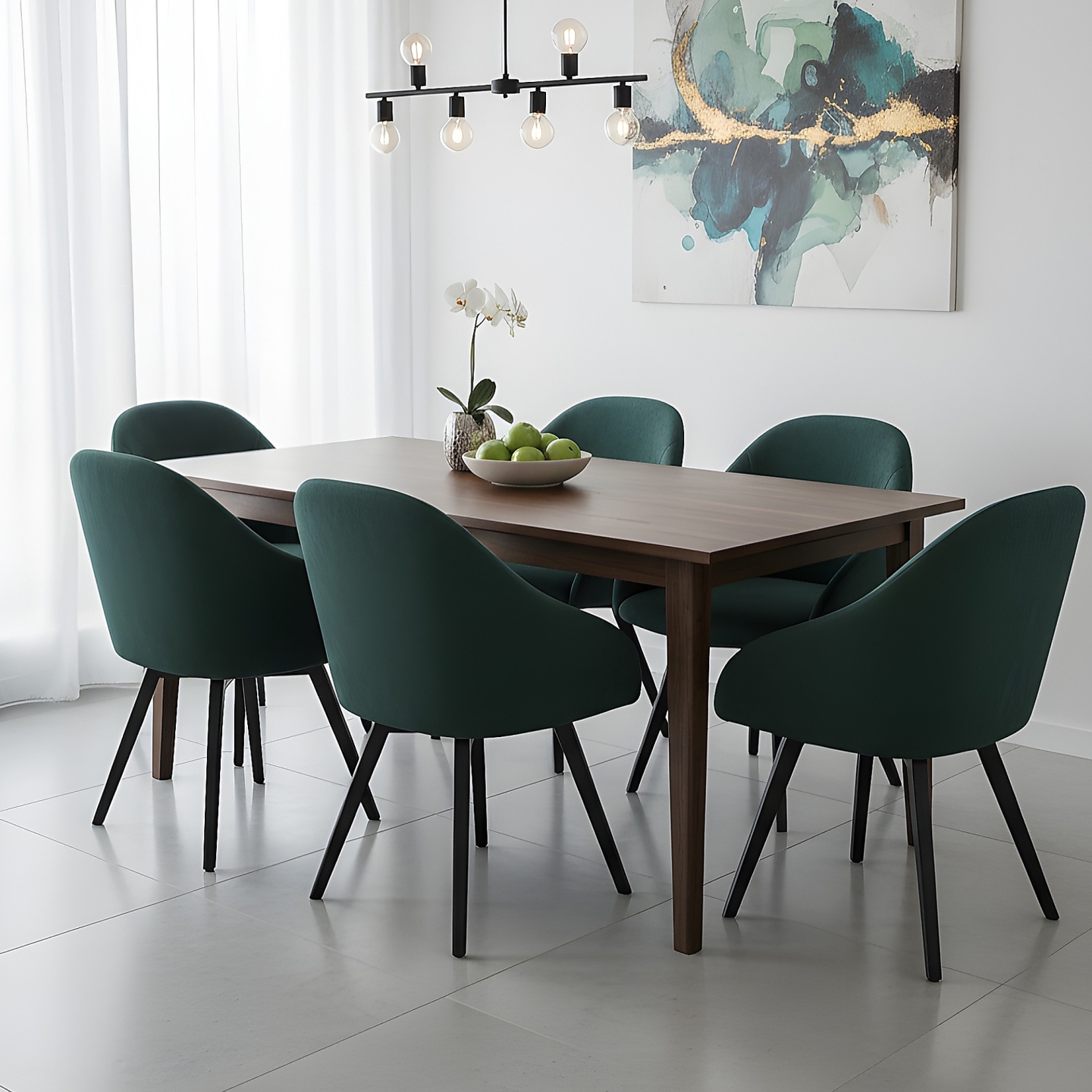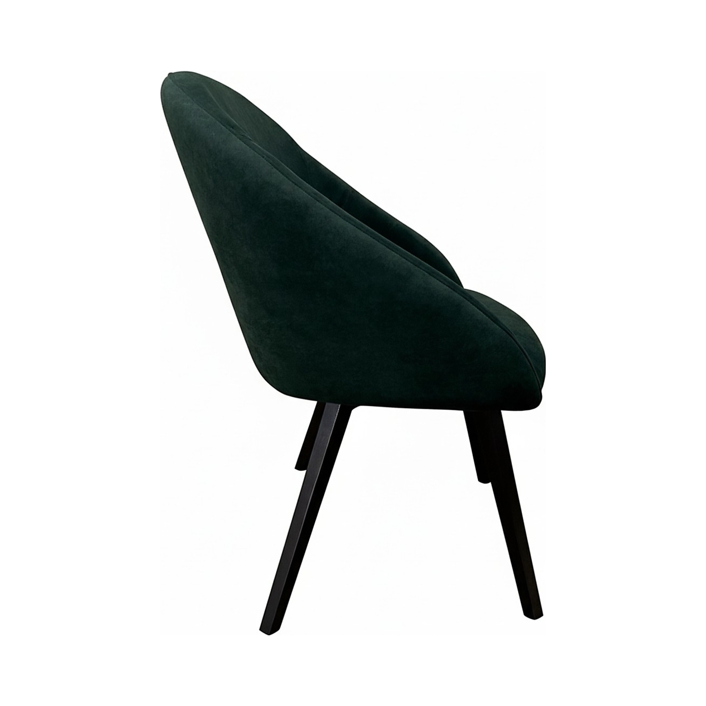 Odkryj kwintesencję elegancji i komfortu dzięki naszemu wyjątkowemu welurowemu krzesłu zielonemu na czarnych nogach. To idealne połączenie nowoczesnego designu z ponadczasowym komfortem, które odmieni wygląd każdej jadalni, salonu czy biura. Intensywny kolor butelkowej zieleni tapicerki, widoczny na zdjęciu, przyciąga wzrok i nadaje wnętrzu głębi, stanowiąc luksusowy akcent w Twojej przestrzeni. Solidne, drewniane nogi w matowej czerni zapewniają stabilność i stanowią stylowy kontrast dla miękkiej, welurowej tkaniny. To nie tylko mebel użytkowy, ale prawdziwa dekoracja, która zadowoli nawet najbardziej wymagających miłośników pięknych wnętrz szukających krzesła tapicerowanego z weluru.