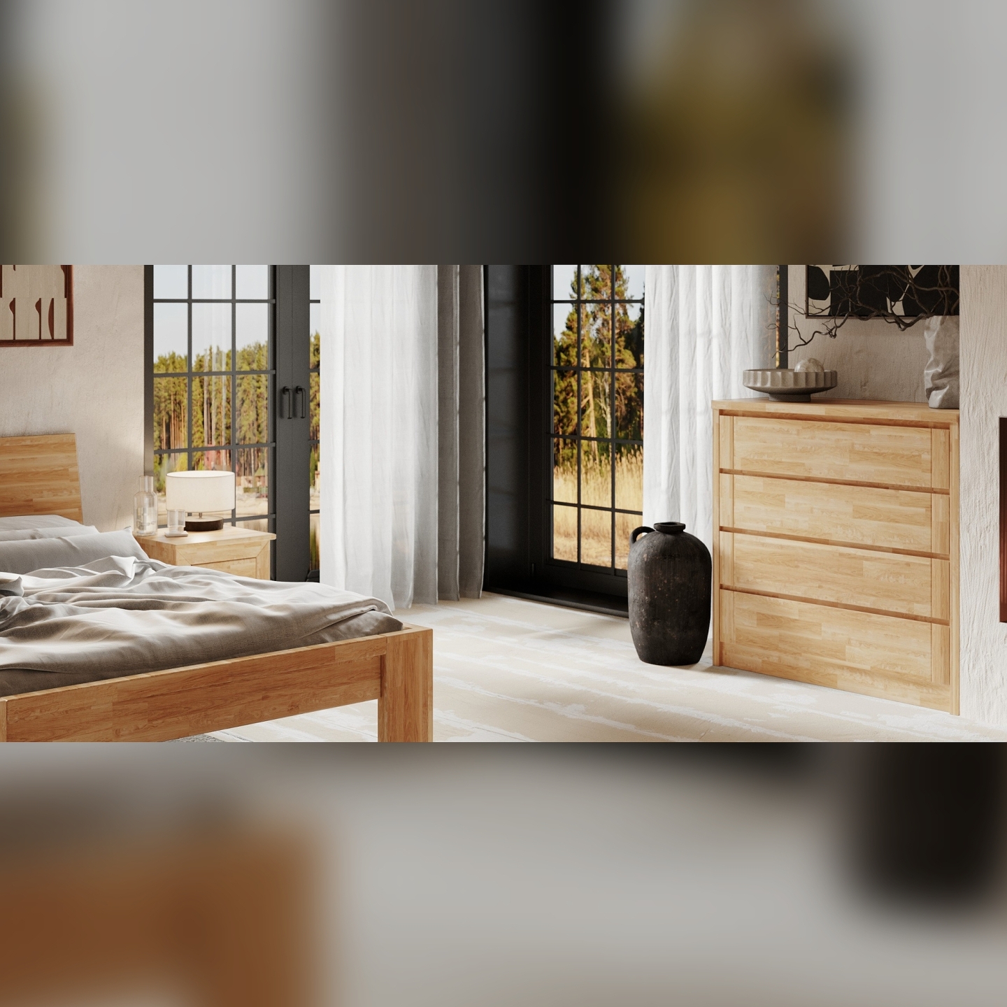 Olejowane, matowe wykończenie zabezpiecza powierzchnię i podkreśla naturalne usłojenie dębu, zachowując jego autentyczny wygląd bez efektu połysku. Rozmiar 120×200 cm sprawdzi się jako komfortowe łóżko jednoosobowe lub kompaktowe łóżko do mniejszych sypialni, pokoju młodzieżowego albo gościnnego.
