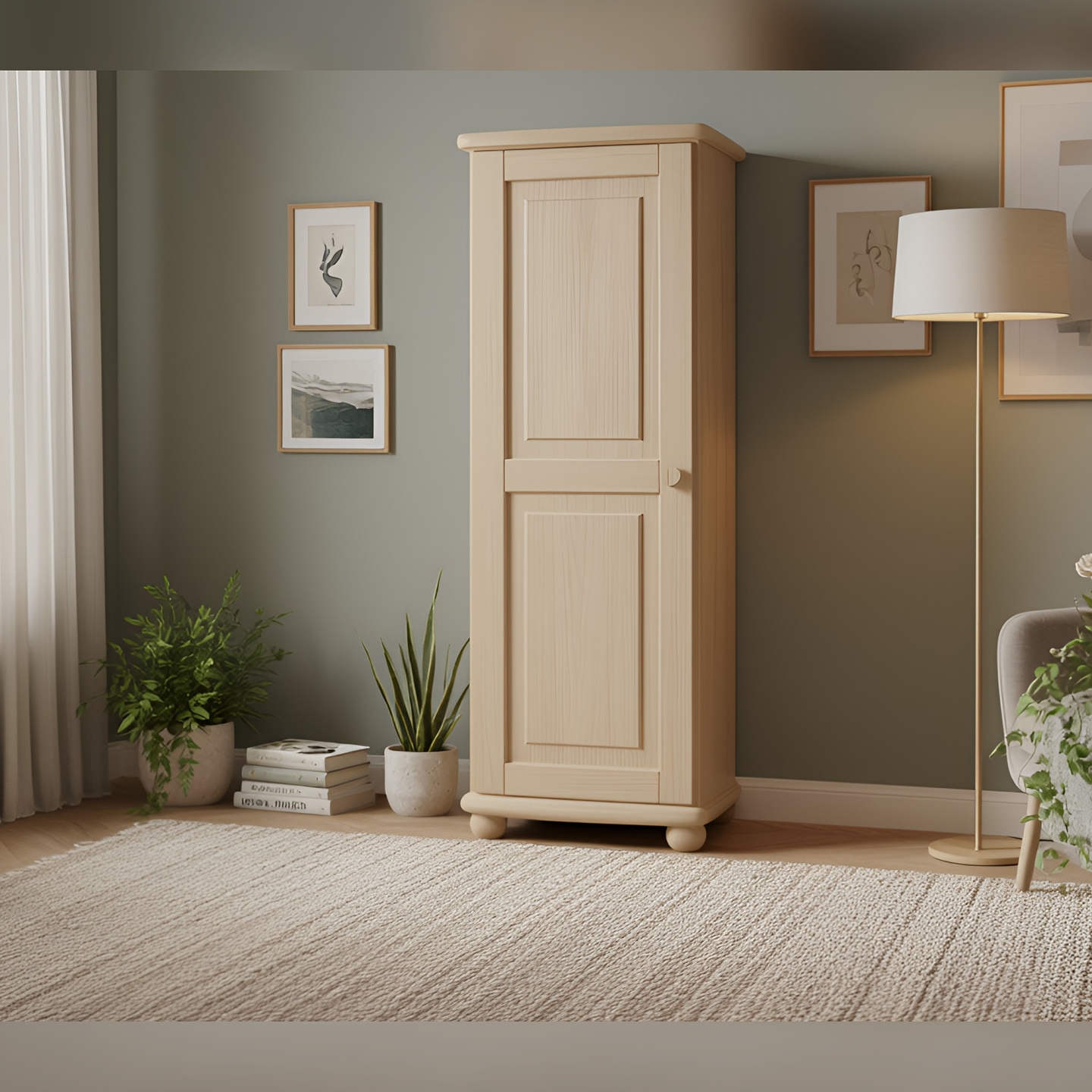 Szukasz eleganckiego i dyskretnego mebla, który maksymalnie wykorzysta dostępną przestrzeń? Prezentujemy wąski słupek sosnowy z drzwiami wykończony lakierem bezbarwnym, idealny do sypialni, przedpokoju lub każdej wnęki. Ta kompaktowa komoda drewniana łączy solidność litego drewna sosnowego z pionowym designem, który oszczędza miejsce. Mebel jest w całości wykonany z drewna, z frontami z bezsęcznego materiału, co gwarantuje jego wysoką estetykę. Przezroczysty lakier doskonale zabezpiecza drewno, jednocześnie eksponując jego naturalny, ciepły odcień. Przy wymiarach zaledwie 45 cm szerokości i 125 cm wysokości, słupek efektywnie rozwiązuje problem przechowywania w ciasnych pomieszczeniach.