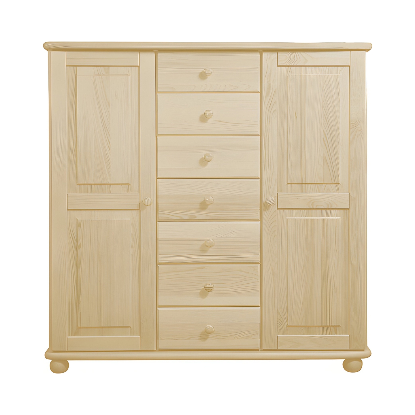 Poszukujesz pojemnej i solidnej komody drewnianej, która zachwyca naturalnym pięknem? Prezentujemy przestronną komodę sosnową z drzwiami i szufladami, której wykończenie lakierem bezbarwnym w pełni eksponuje urok litego drewna. Ta komoda, idealna do sypialni lub salonu, jest w całości wykonana z drewna sosnowego, z frontami z bezsęcznego materiału, co gwarantuje jej niezrównaną trwałość. Z imponującymi wymiarami 125 cm szerokości i 125 cm wysokości, zapewnia ona maksymalne możliwości przechowywania. Lakier bezbarwny nie tylko podkreśla piękny rysunek słojów, ale także skutecznie zabezpiecza powierzchnię mebla, czyniąc go odpornym na codzienne użytkowanie.