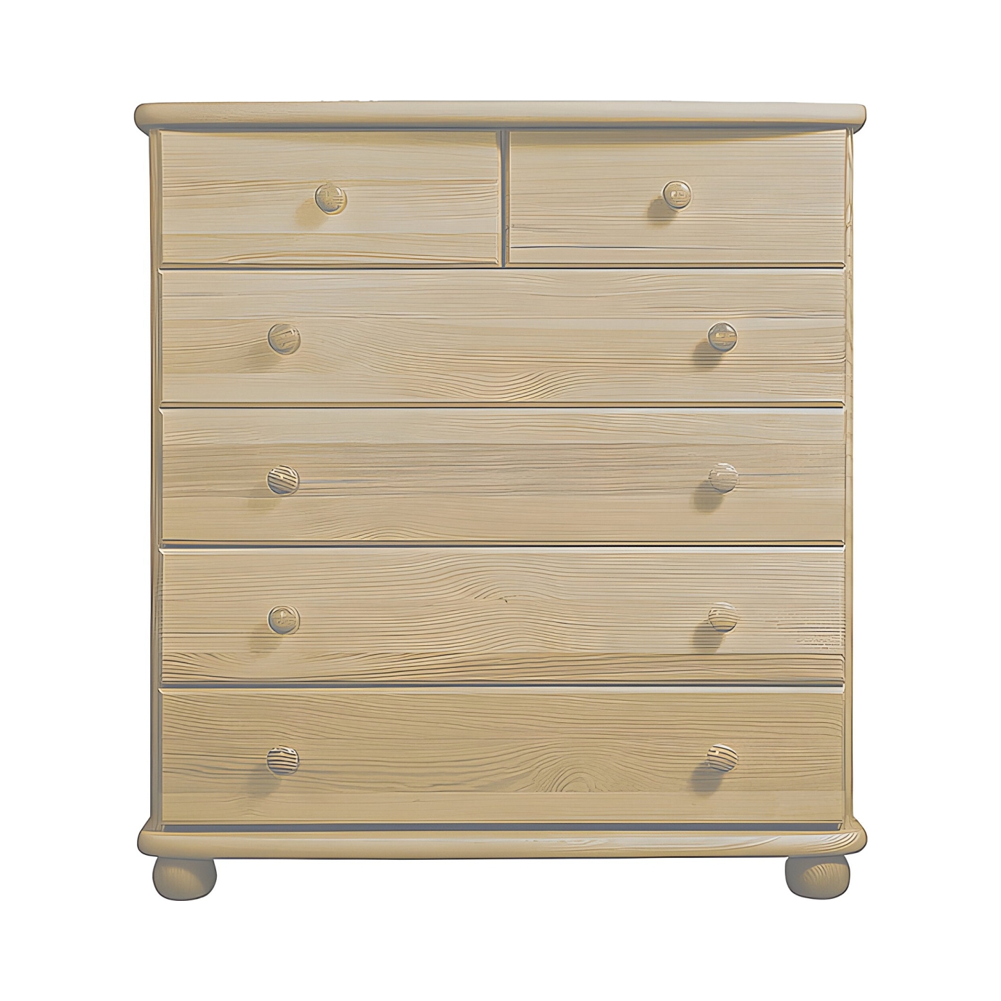Poszukujesz solidnej komody drewnianej, która stawia na maksymalną organizację? Prezentujemy komodę sosnową z szufladami, idealną do przechowywania bielizny i drobiazgów. Mebel ten został wykończony lakierem bezbarwnym, który doskonale zabezpiecza drewno, jednocześnie eksponując jego naturalny, ciepły odcień. Komoda jest wykonana w całości z drewna sosnowego, z bezsęcznych frontów, co gwarantuje jej niezawodną trwałość. Z wymiarami 85 cm szerokości i 91 cm wysokości, jest to optymalne rozwiązanie do efektywnego wykorzystania przestrzeni w sypialni.
