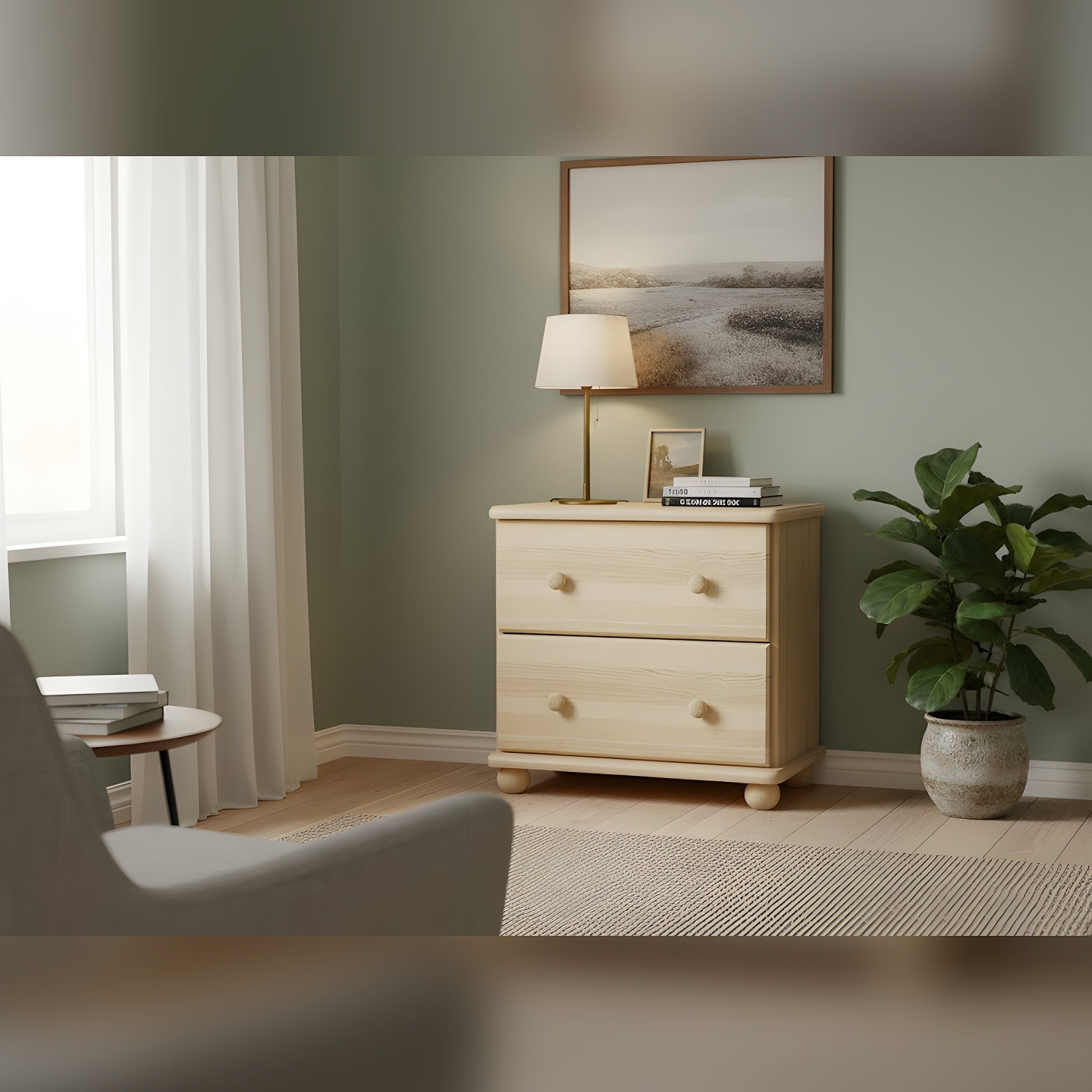 Szukasz kompaktowej i solidnej szafki nocnej lub małej komody drewnianej? Prezentujemy szafkę sosnową z szufladami, idealną do sypialni. Mebel ten został wykończony lakierem bezbarwnym, który doskonale zabezpiecza drewno, jednocześnie eksponując jego naturalny, ciepły odcień. Komoda jest wykonana w całości z drewna sosnowego, z bezsęcznych frontów, co gwarantuje jej niezawodną trwałość. Z wymiarami 55 cm szerokości i 55 cm wysokości, jest to doskonały element uzupełniający.