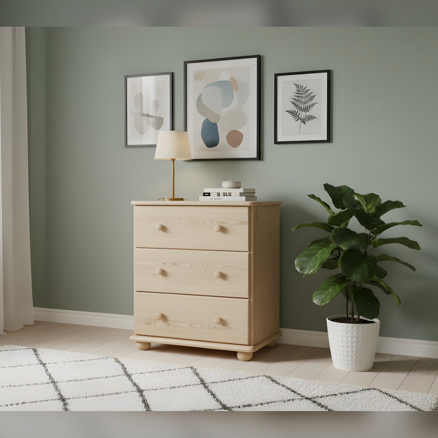 Szukasz kompaktowej i solidnej komody drewnianej, która pozwoli wykorzystać ograniczoną przestrzeń? Prezentujemy komodę sosnową z szufladami, idealną jako szafka na ubrania lub drobiazgi. Mebel ten został wykończony lakierem bezbarwnym, który doskonale zabezpiecza drewno, jednocześnie eksponując jego naturalny, ciepły odcień. Komoda jest wykonana w całości z drewna sosnowego, z bezsęcznych frontów, co gwarantuje jej niezawodną trwałość. Z wymiarami **55 cm szerokości** i **78 cm wysokości**, doskonale wpasowuje się w mniejsze wnęki i narożniki.
