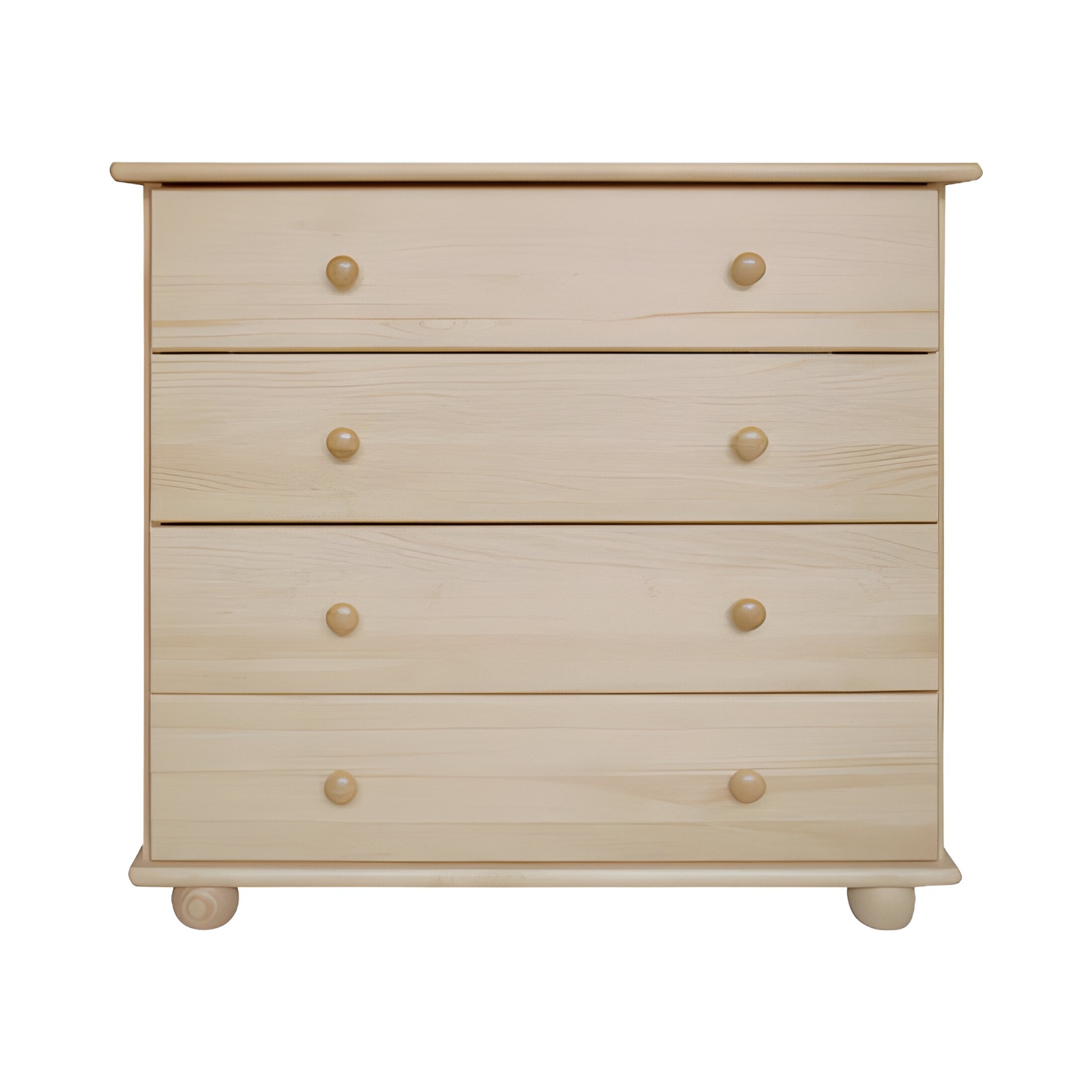 Szukasz solidnej i pojemnej komody drewnianej, która pomoże Ci uporządkować dużą ilość ubrań i bielizny? Prezentujemy sosnową komodę z szufladami o szerokości 93 cm i głębokości 47 cm, wykonaną w całości z litego drewna sosnowego, wykończonego lakierem bezbarwnym. Klasyczny design i naturalny materiał sprawiają, że idealnie wpasuje się w każdą sypialnię.