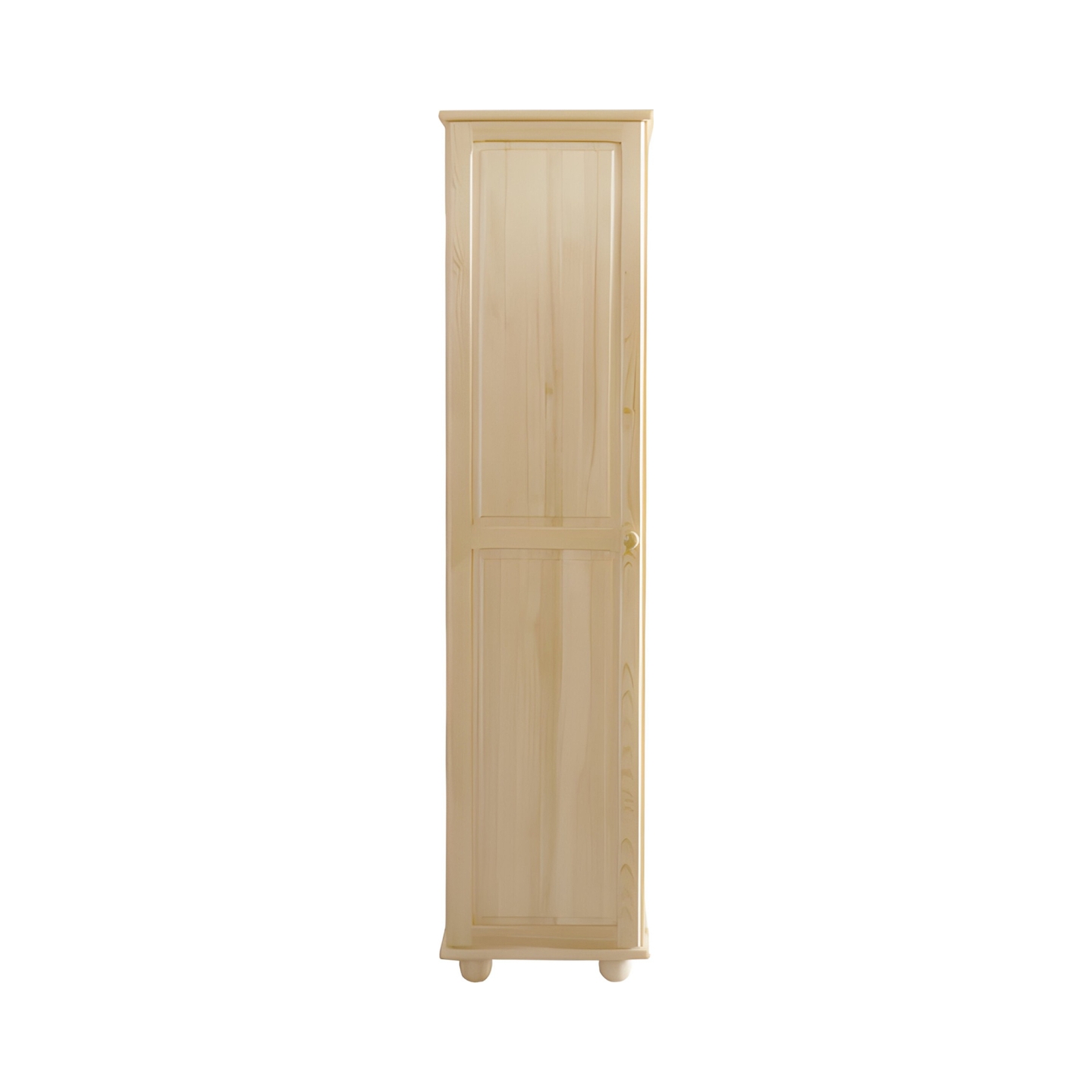 Szukasz wąskiej, ale wysokiej szafy drewnianej, idealnej do maksymalnego wykorzystania małej przestrzeni i wnęk? Prezentujemy jednodrzwiową szafę sosnową typu słupek, przeznaczoną wyłącznie do przechowywania odzieży wiszącej. Dzięki szerokości zaledwie 47 cm, jest to idealne rozwiązanie do optymalizacji miejsca. Mebel wykonany jest w całości z drewna sosnowego, wykończonego lakierem bezbarwnym.