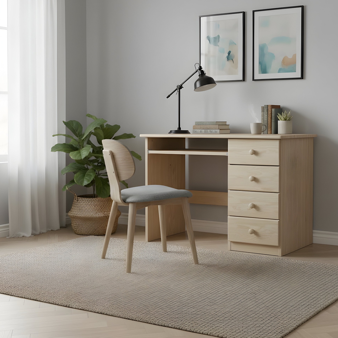 Szukasz eleganckiego i funkcjonalnego sekretarzyka drewnianego lub biurka o idealnych do mniejszych pomieszczeń wymiarach? Prezentujemy biurko sosnowe z szufladami. Mebel ten został wykonany w całości z drewna sosnowego, wykończonego lakierem bezbarwnym, który doskonale zabezpiecza drewno. Blat o szerokości 100 cm i głębokości 48 cm zapewnia optymalne miejsce do pracy, a liczne szuflady pomagają utrzymać porządek.