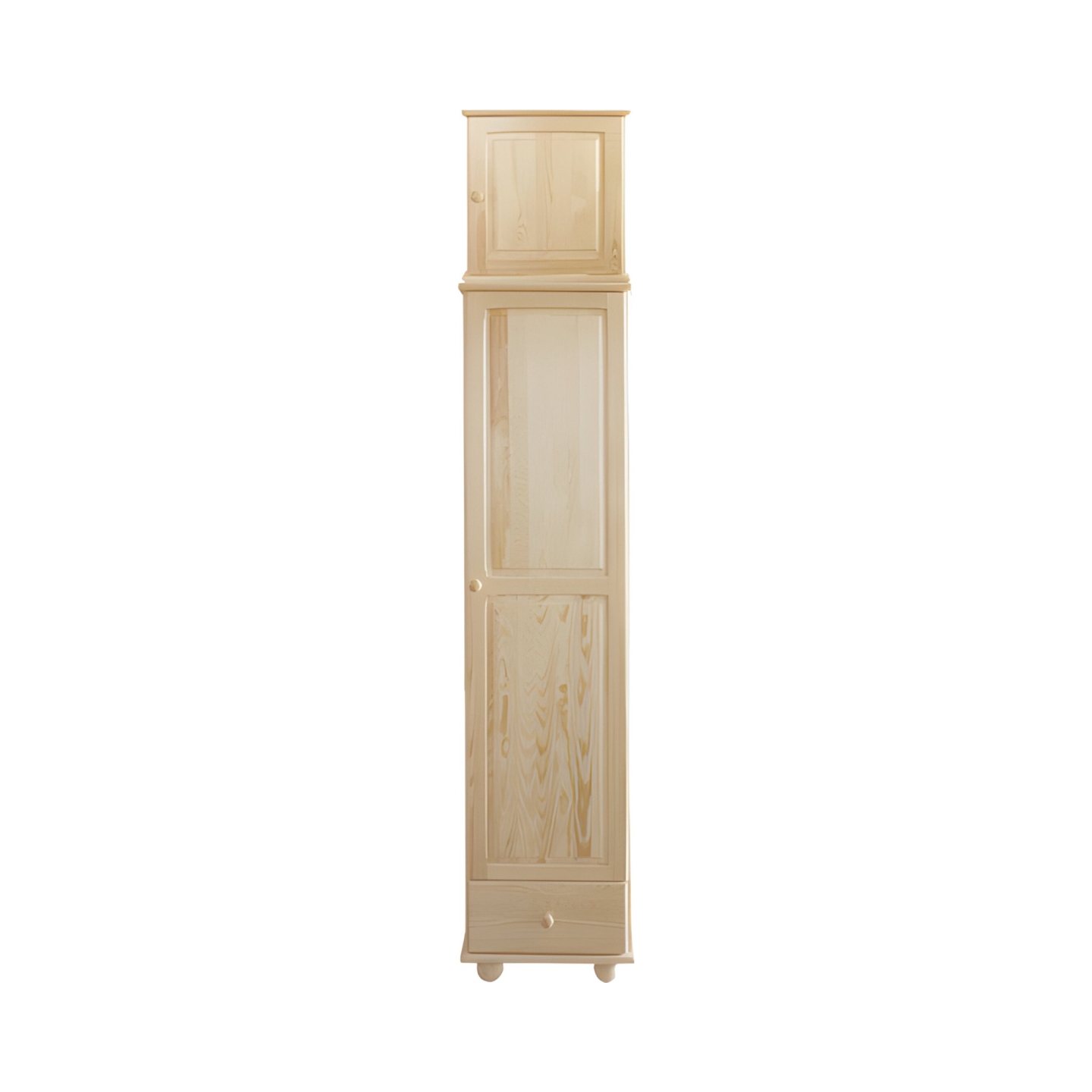 Szukasz ekstremalnie wysokiej, ale wąskiej szafy drewnianej, która sięga sufitu, maksymalizując przestrzeń do przechowywania? Prezentujemy jednodrzwiową szafę sosnową typu słupek z praktyczną nadstawką. Łączna wysokość 240 cm (190 cm szafa + 50 cm nadstawka) pozwala na optymalne wykorzystanie pionowej przestrzeni. Mebel jest wykonany w całości z drewna sosnowego, wykończonego lakierem bezbarwnym.