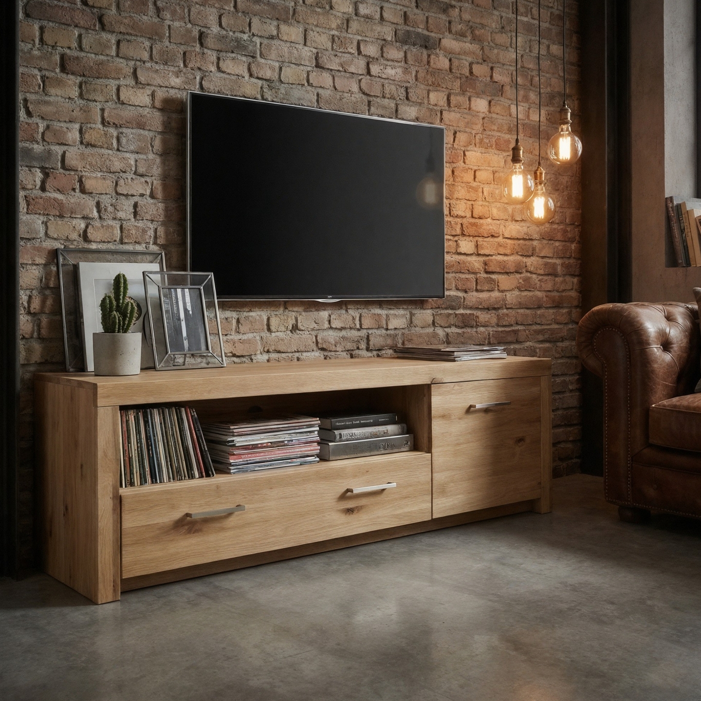 Prosta i solidna konstrukcja dobrze znosi obciążenia oraz intensywne korzystanie. Otwarta półka zapewnia wentylację urządzeń, a szuflada i zamykana szafka pozwalają schować kable, piloty i akcesoria. Waga 55 kg potwierdza stabilność mebla nawet przy dużych odbiornikach.