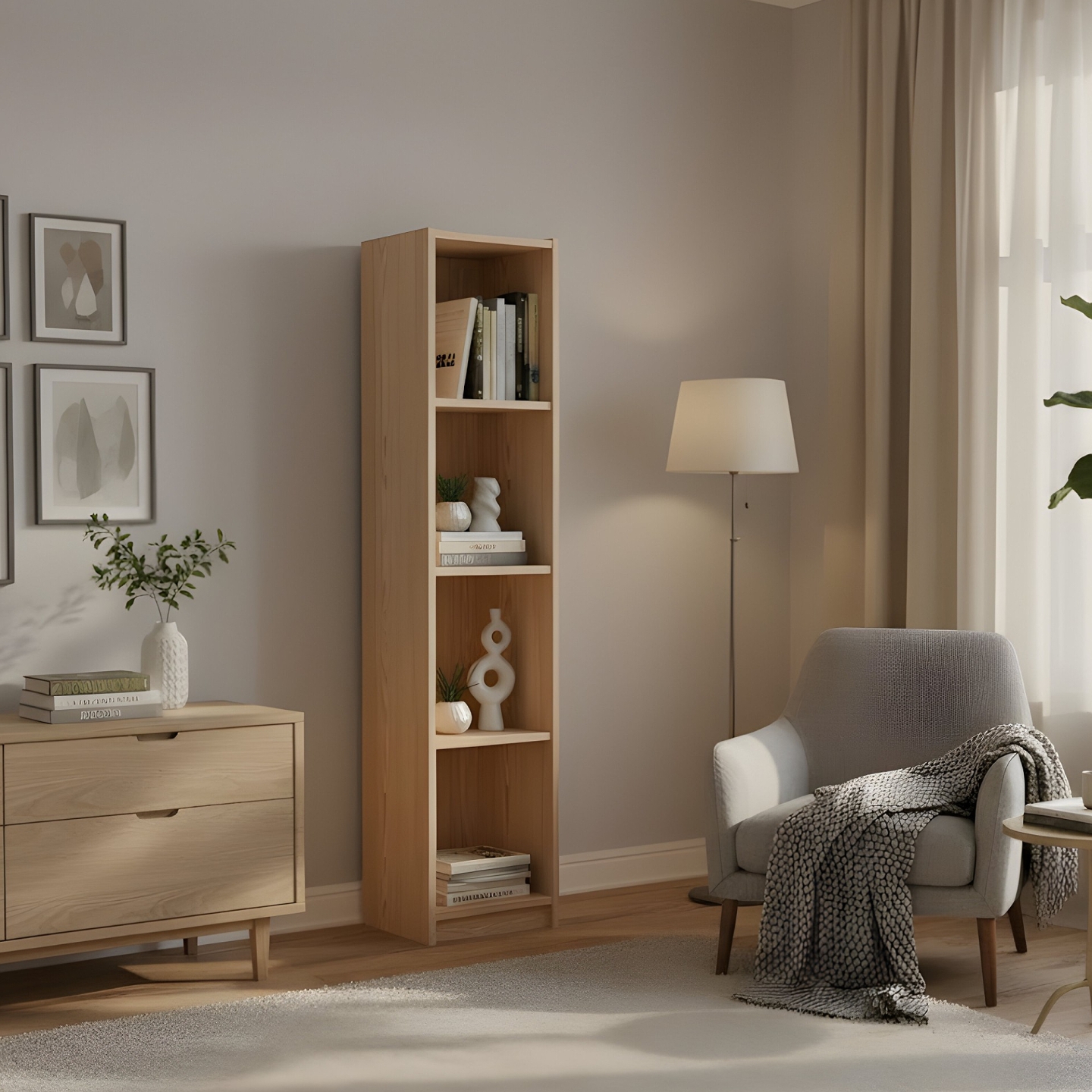 Szukasz wąskiego i wysokiego regału, który pomieści Twoje książki i dekoracje, zajmując przy tym minimalną przestrzeń? Prezentujemy sosnową biblioteczkę otwartą, wykonaną w całości z litego drewna sosnowego, wykończonego lakierem bezbarwnym. Z wymiarami 42 cm szerokości i 180 cm wysokości, regał idealnie sprawdzi się do wypełniania wnęk lub jako moduł uzupełniający.