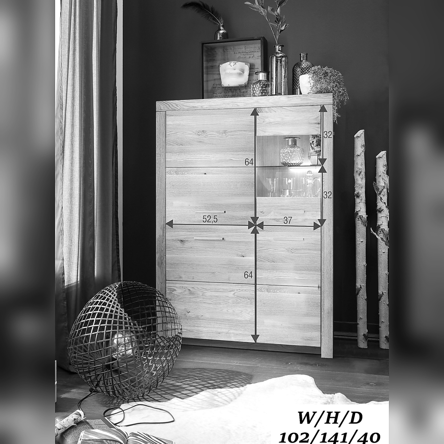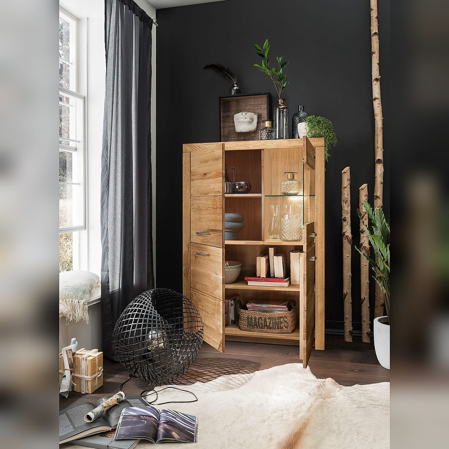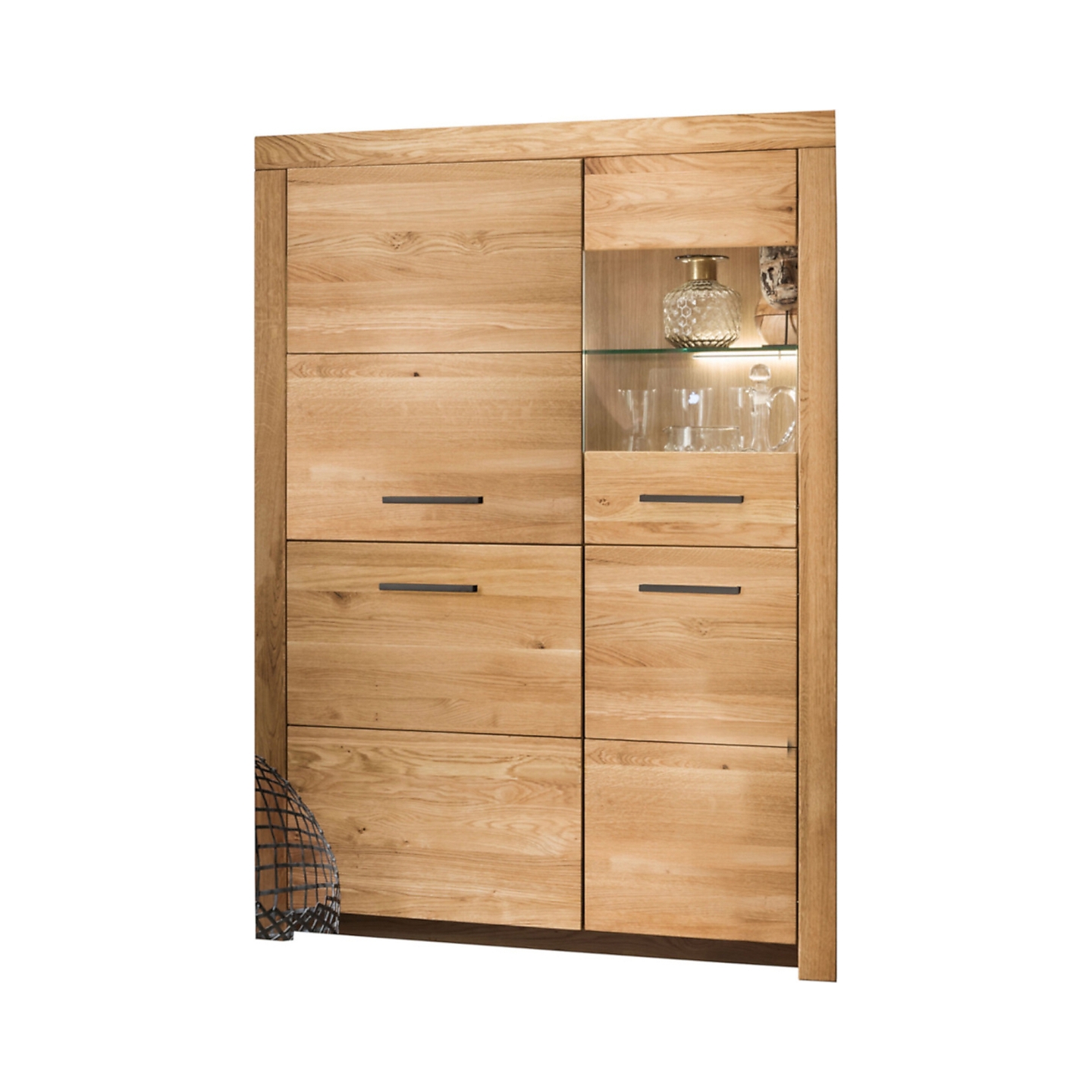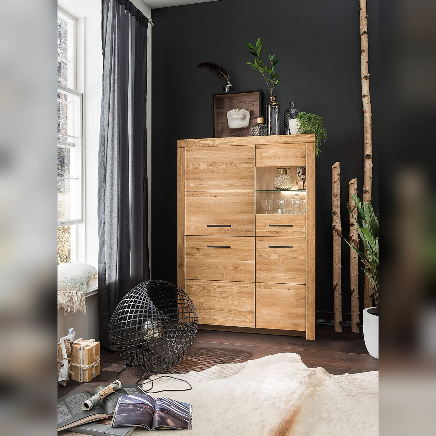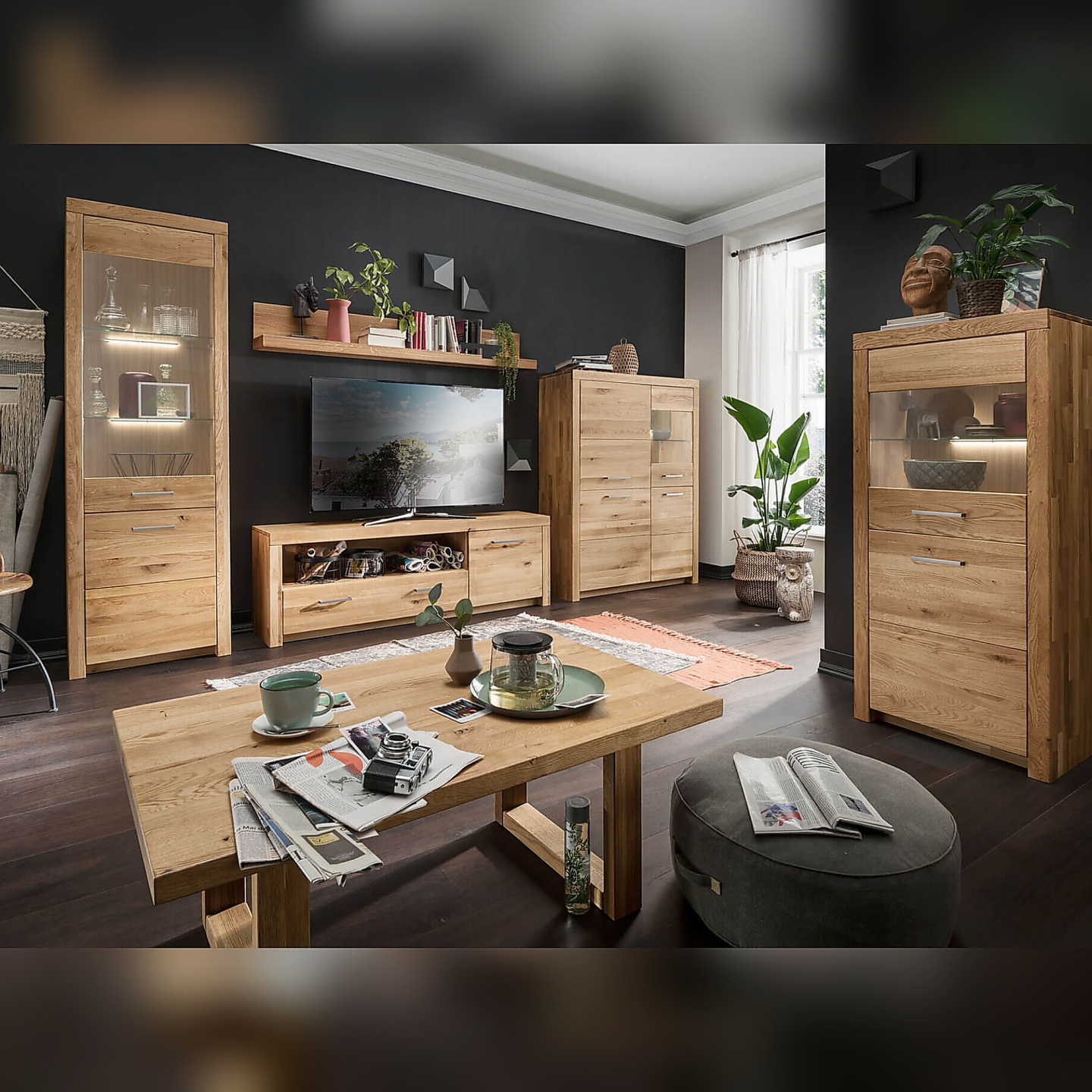 Konstrukcja kredensu zapewnia stabilność i pewne podparcie w codziennym użytkowaniu. Przemyślany układ półek i szafek ułatwia przechowywanie zastawy, tekstyliów i akcesoriów, a naturalny rysunek dębu w połączeniu z prostą linią frontów sprawia, że mebel pasuje zarówno do wnętrz nowoczesnych, jak i klasycznych.