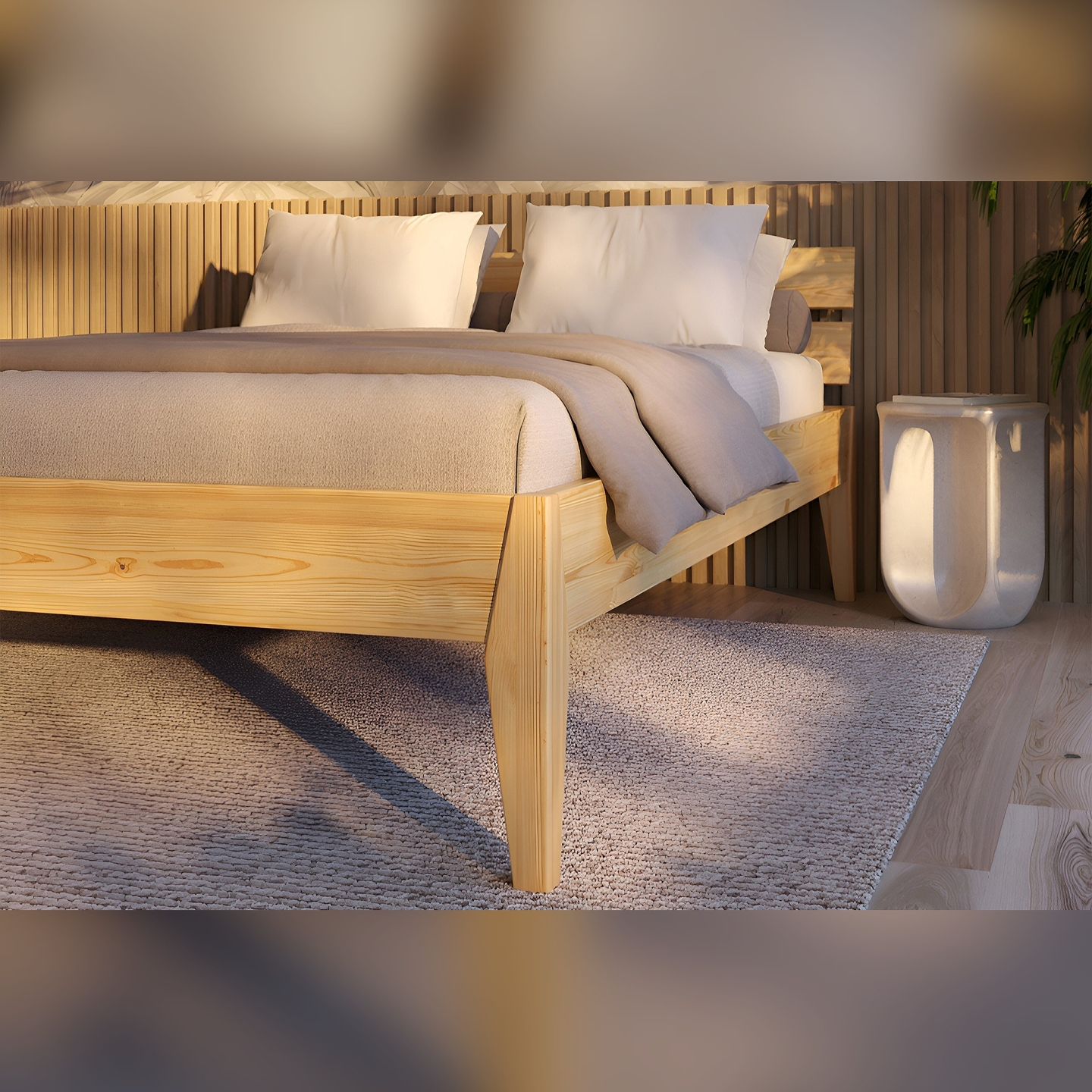 Odkryj urok naturalnego drewna z naszym Łóżkiem sosnowym Torino. Wykonane z solidnego drewna sosnowego, to klasyczne łóżko do sypialni łączy w sobie trwałość i ponadczasowy design. Idealne do relaksu i snu, dostępne jest w wielu rozmiarach, aby idealnie dopasować się do Twojej przestrzeni. Na zdjęciu prezentuje się w naturalnym, jasnym odcieniu sosny, z prostym, ale eleganckim wezgłowiem składającym się z poziomych desek, zapewniającym wsparcie i chroniącym ścianę. Lekka, beżowa narzuta i poduszki dodają mu przytulności.